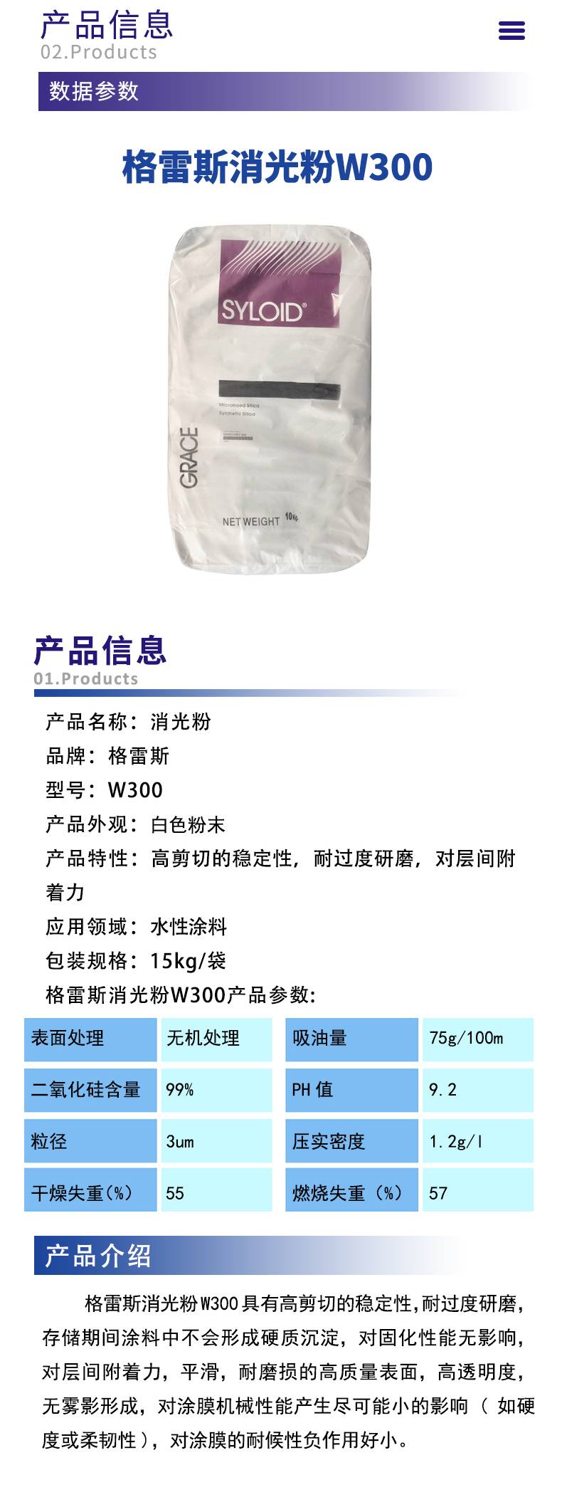 美国格雷斯SYLOID消光粉W300二氧化硅哑光粉水油性通用涂料
