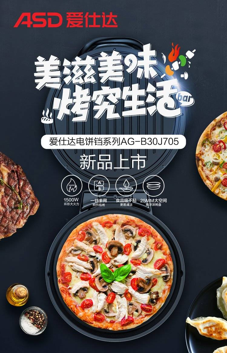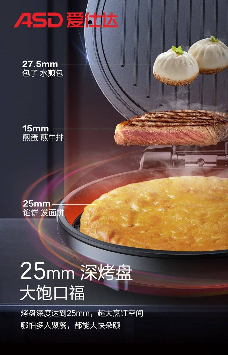 爱仕达智烤系列美滋美味考究生活双盘独立控温电饼铛
