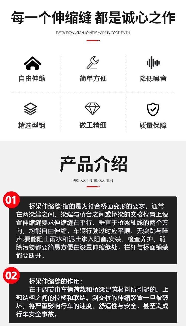 伸缩缝自带配套橡胶条 功能 工程端勾连排型 安装规格齐全 梳齿板型