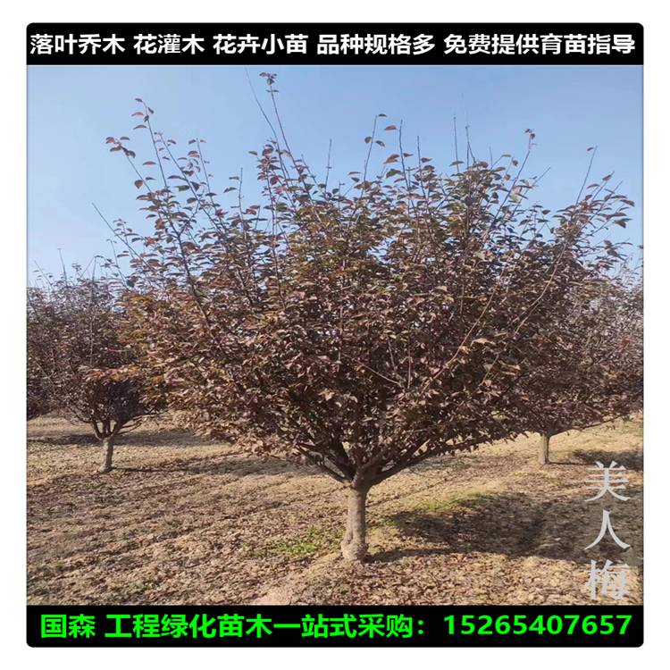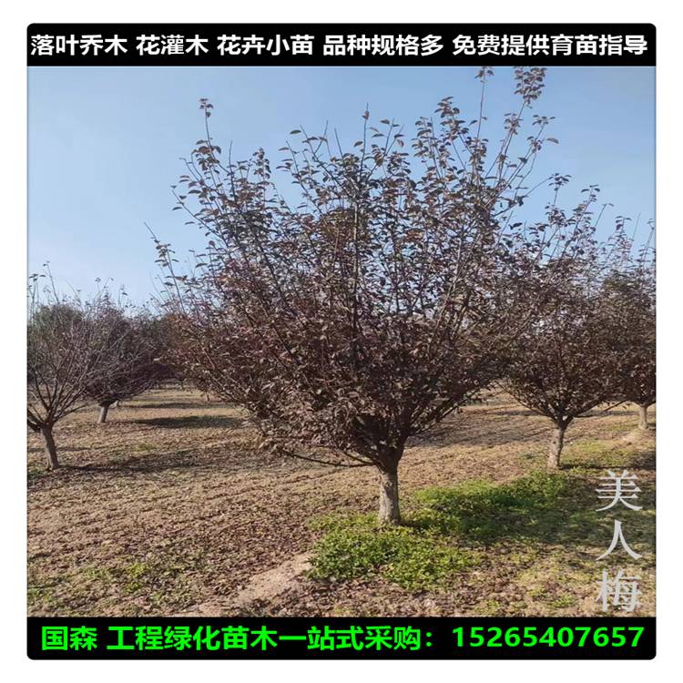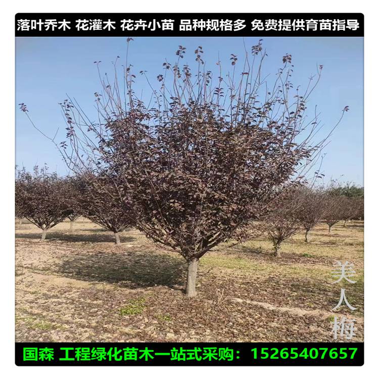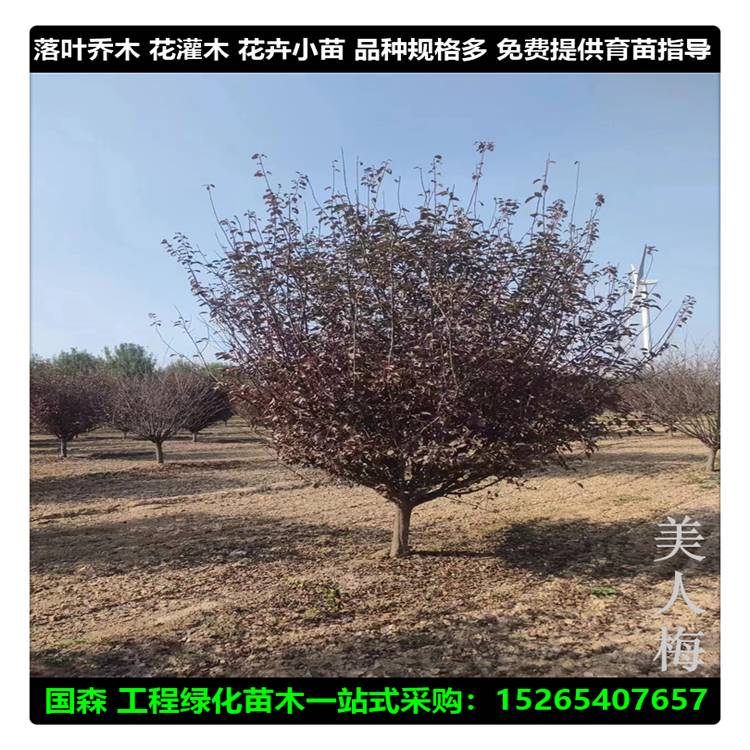 基地大量供应 原生美人梅 独杆重瓣美人梅树8-20公分花期长 观赏性高