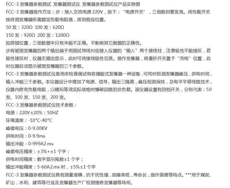 FCC型 矿用发暴器参数测试仪 工作可靠结构合理
