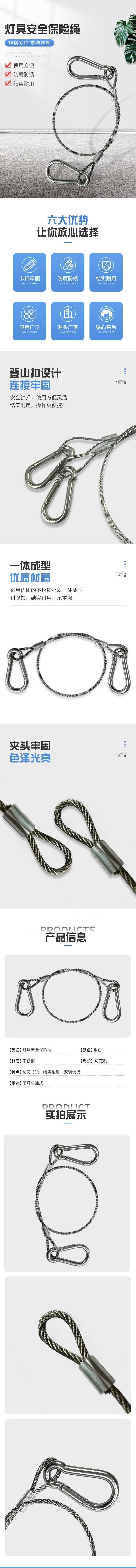 国为304螺杆灯具配件防坠绳钢丝绳安全灯具吊线