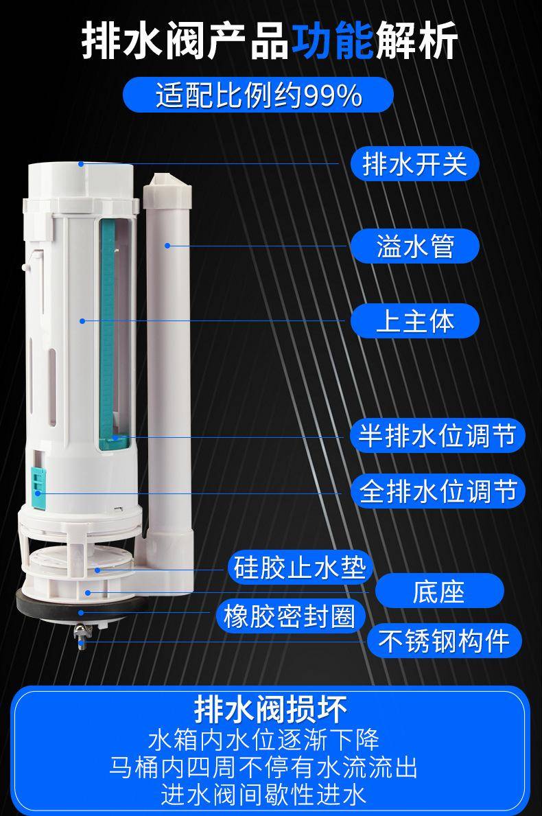 马桶排水阀 通用连体水箱配件 阀 出下放水顶双按节水型