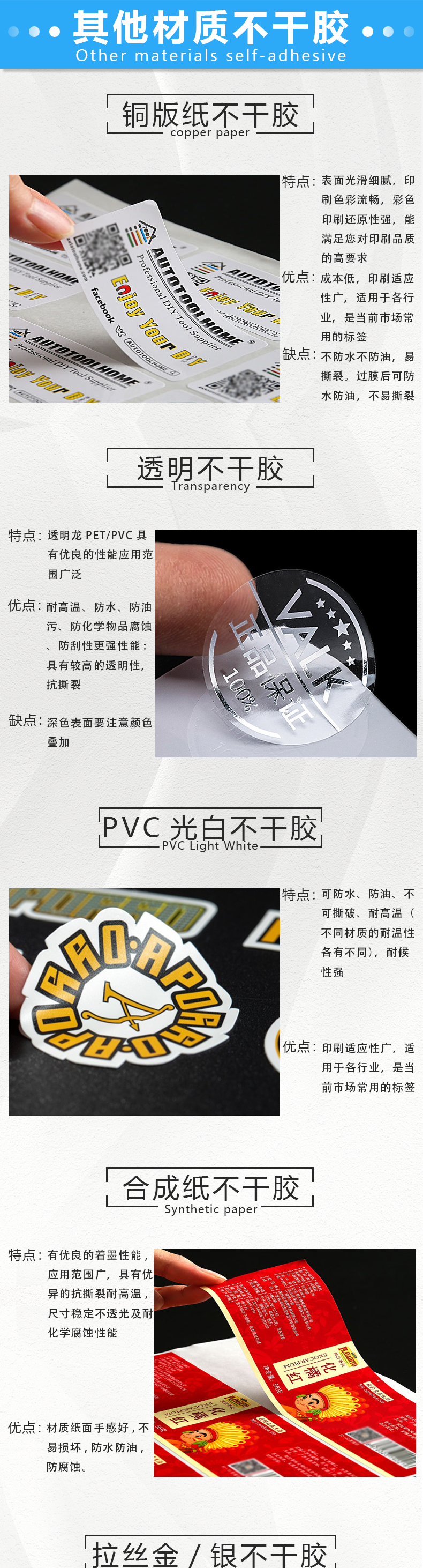 华创合成纸不干胶标签 胶印黄底哑银防水防油