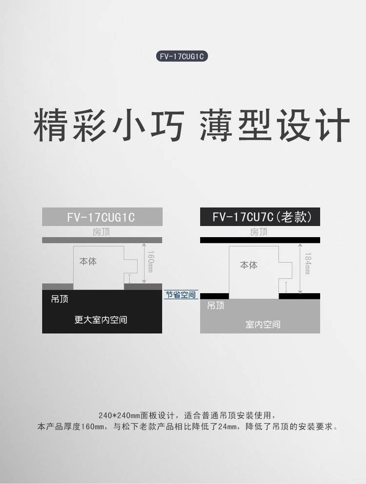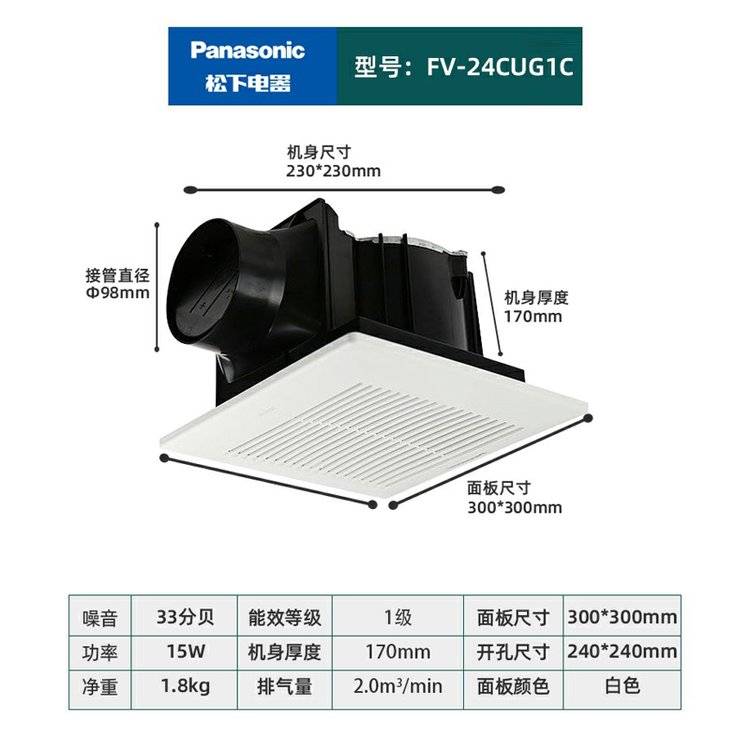 松下换气扇 FV-24CUG1C天埋扇吊顶排气扇吸顶式管道排风扇300*300