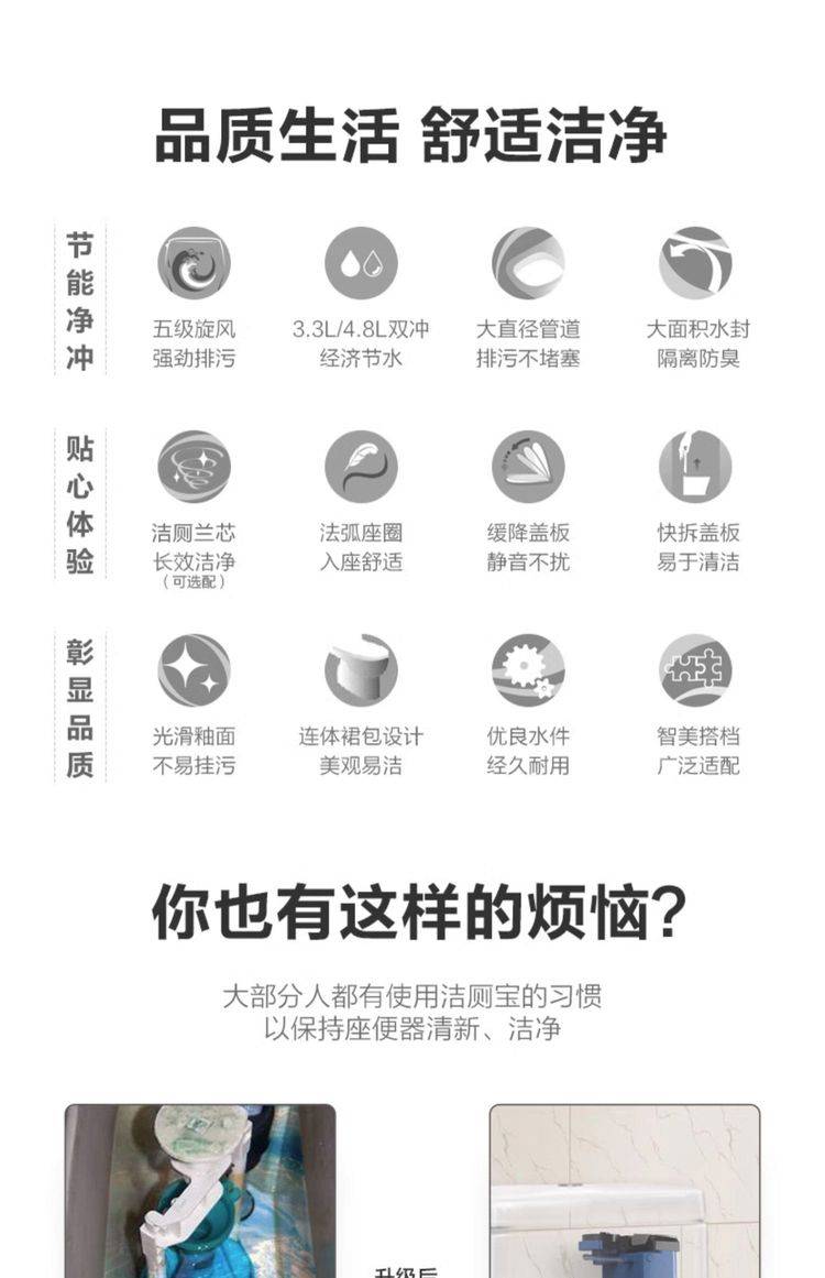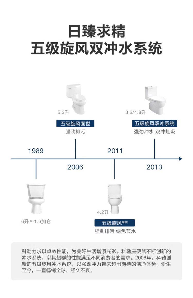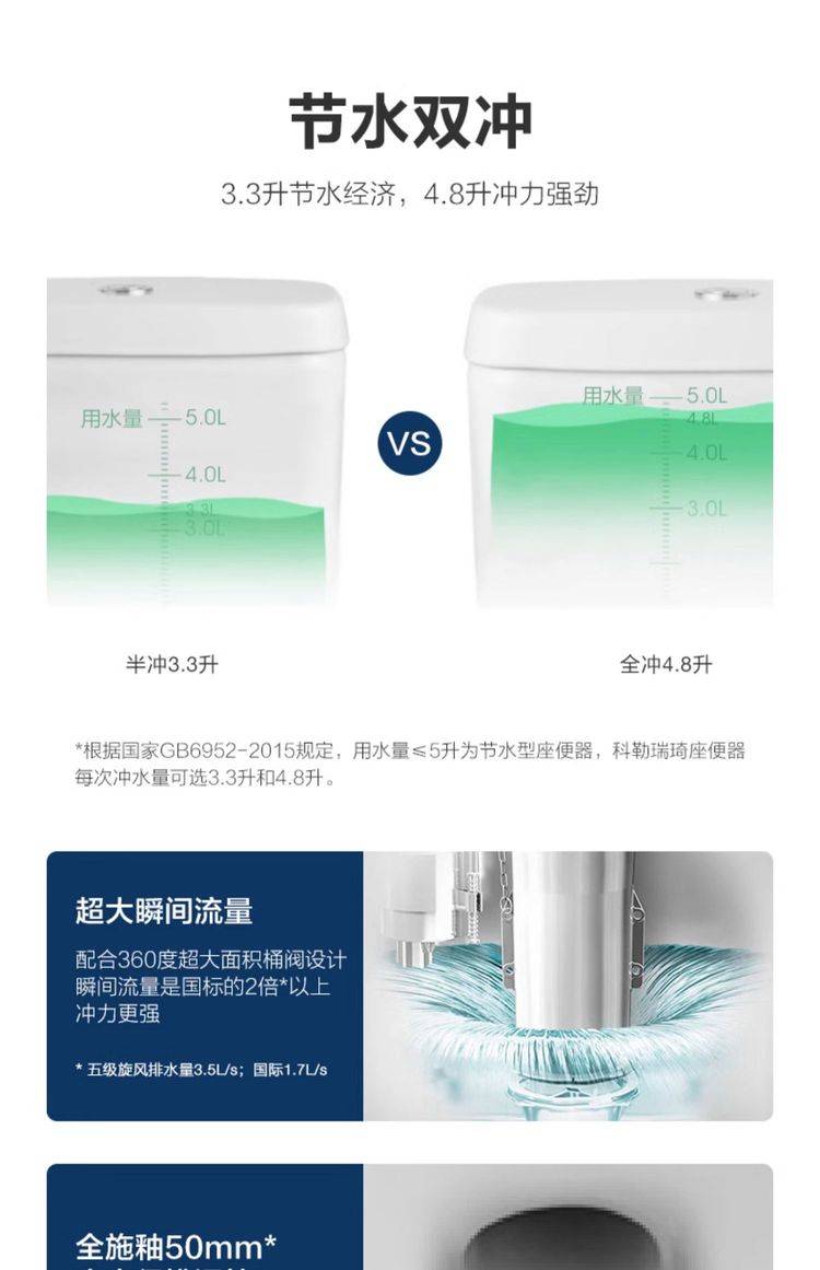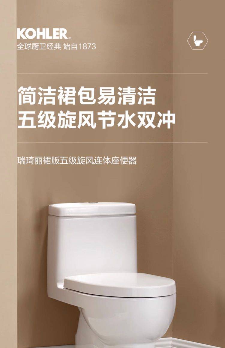 科勒瑞琦马桶家用卫生间连体式坐便器超漩式节水双冲静音缓降3983