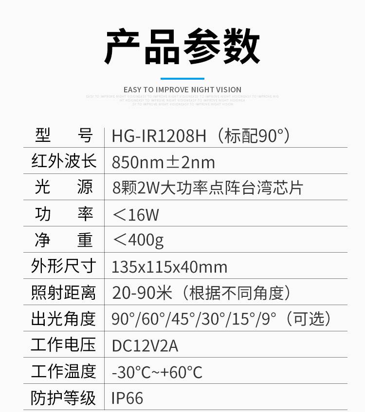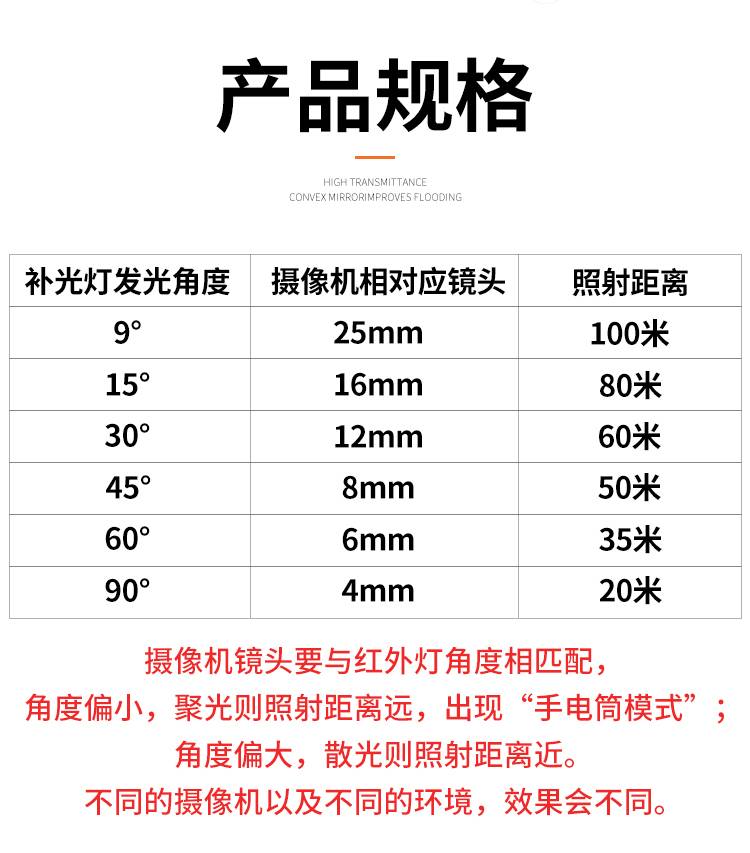 850nm监控红外补光灯摄像头红外线灯DC12V高清夜视辅助灯室外防水