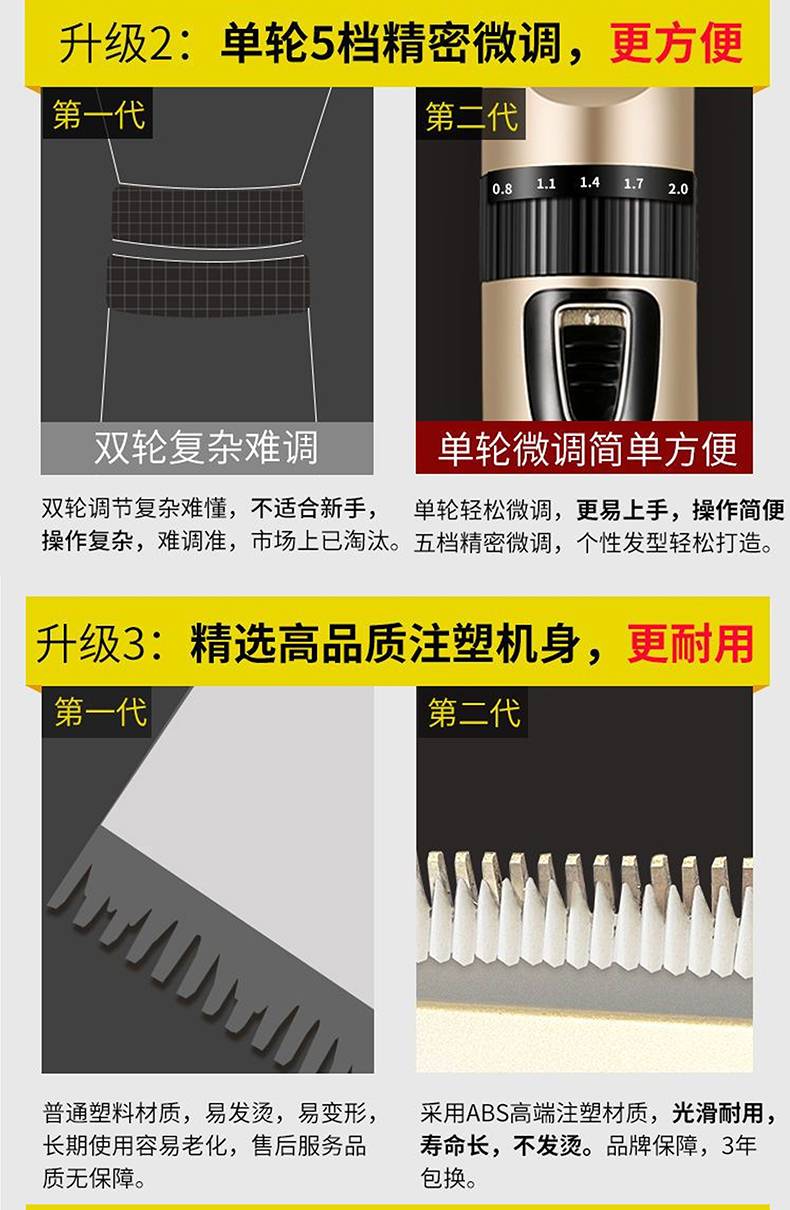 罗曼伦增白器理发剃须刀快充多功能四色可选工业级理发工具