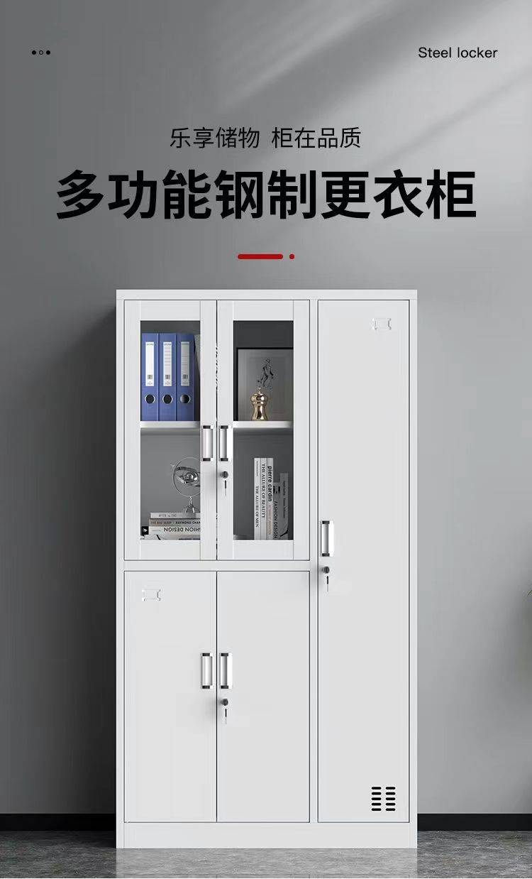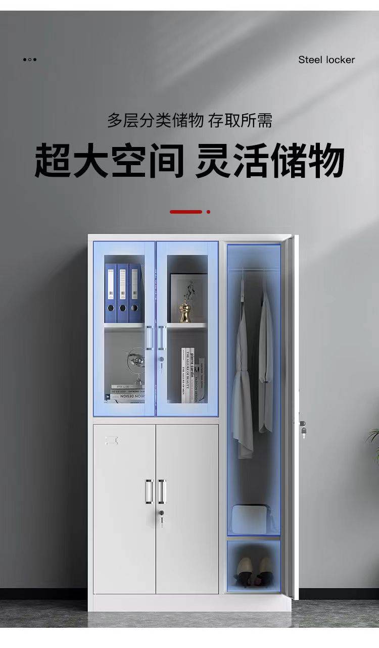 办公家具钢制文件柜铁皮柜子资料室五门玻璃器械更衣柜灰套白厂家