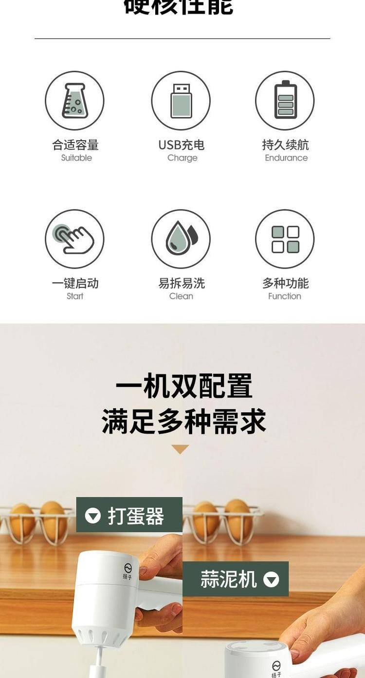 扬子H-D03多功能打蛋器 无线二合一 打蛋蒜泥轻松切换