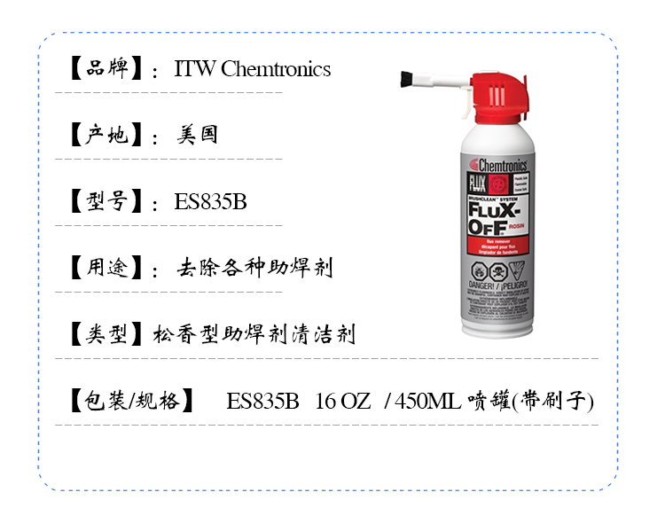 美国ITWChemtronics进口助焊剂清洁剂450MLES835B松香型ES896快干