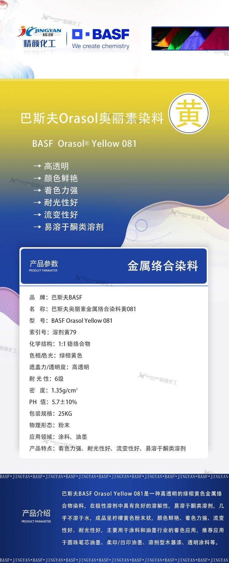 2222DIC/巴斯夫染料081柠檬黄 BASF奥丽素油墨用金属络合染料溶剂黄79