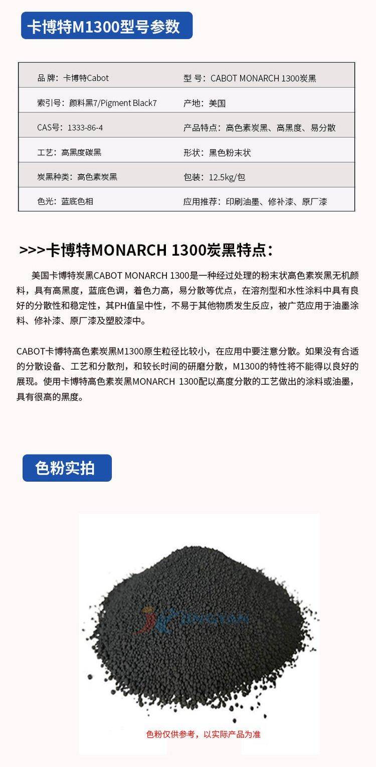 美国卡博特M1300 高色素炭黑CABOT 1300涂料油墨用特种碳黑颜料