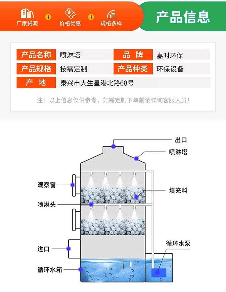 嘉时环保 耐酸碱PP洗涤塔 除臭净化工业气体 现货速发