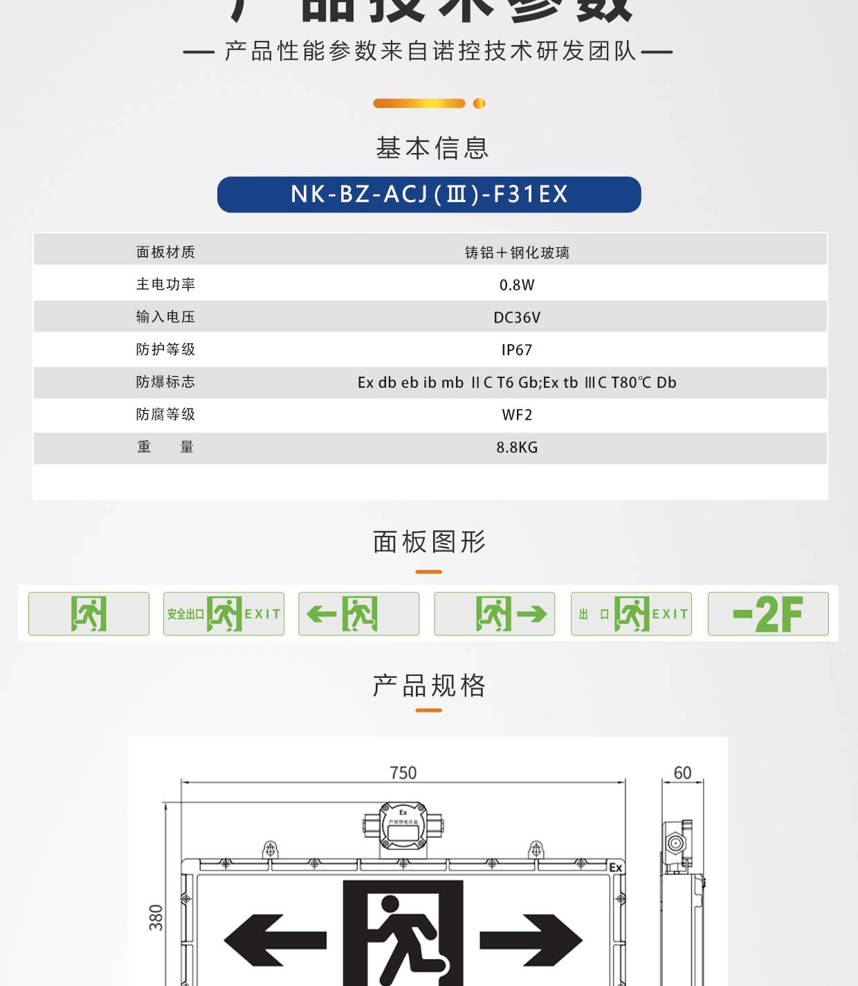 防爆指示灯应急标志灯安全出口左向右向双向粉尘热电厂喷漆车间