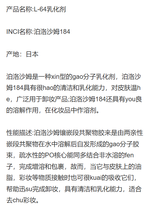 日本 L-64 乳化剂 泊洛沙姆184 卸妆水洁面乳 原料 1kg