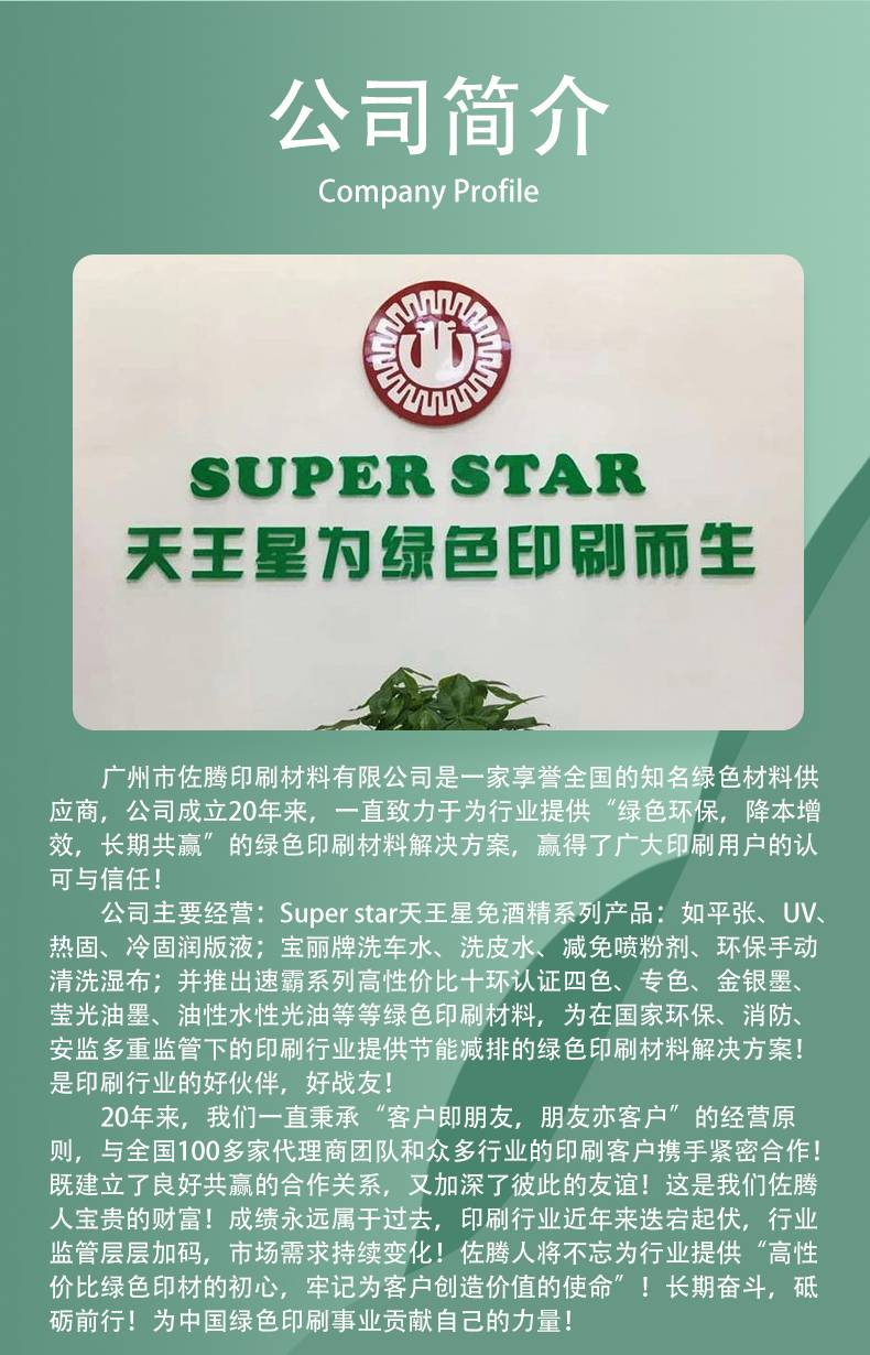 Super Star 8000免酒精润版液 天王星高速品质印刷机清洗耗材