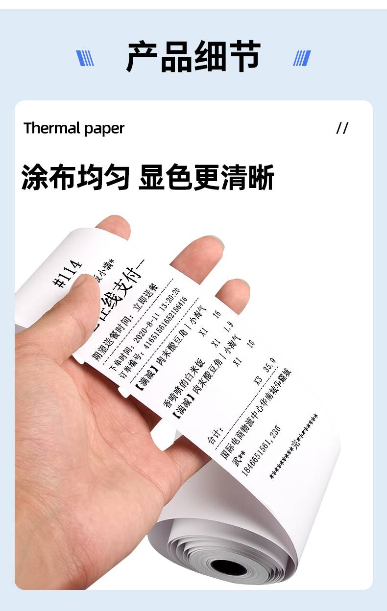 当即品牌57*50规格热敏打印纸 正规无管芯加量装 白色印刷用纸