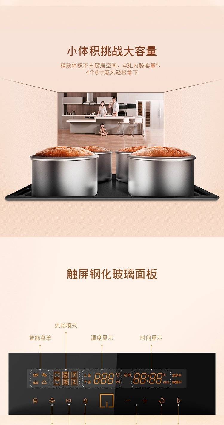 Fotile KQD43F-E2T烤箱家用烘焙嵌入式多功能智能触控电烤箱