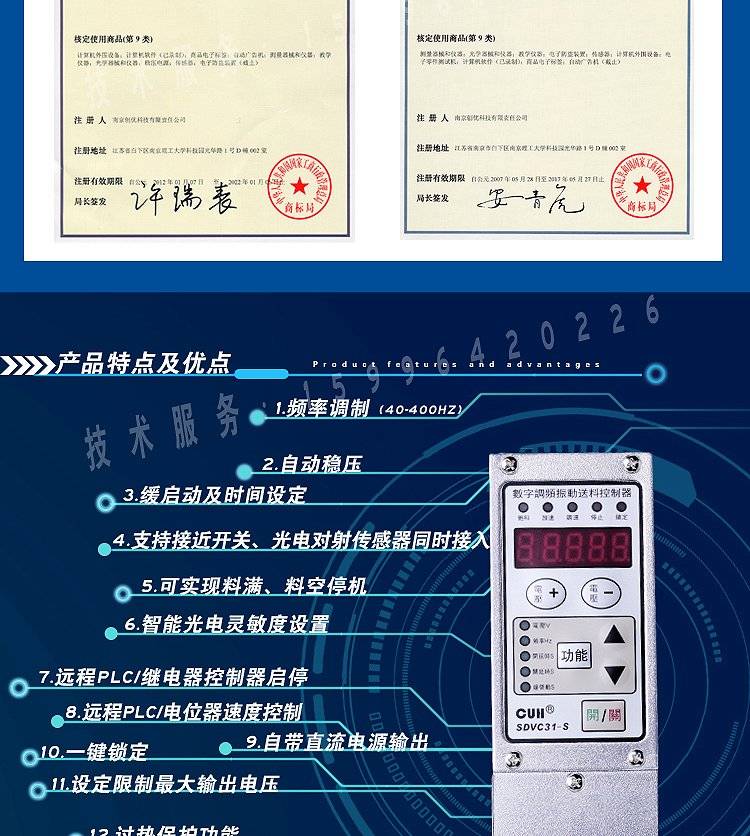 CUH创优虎SDVC31-S或M智能数字调频振动盘直振直线送料控制器