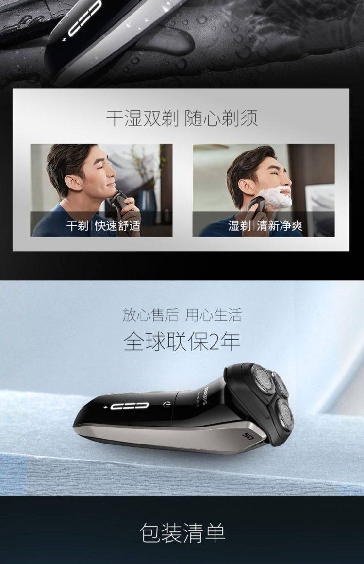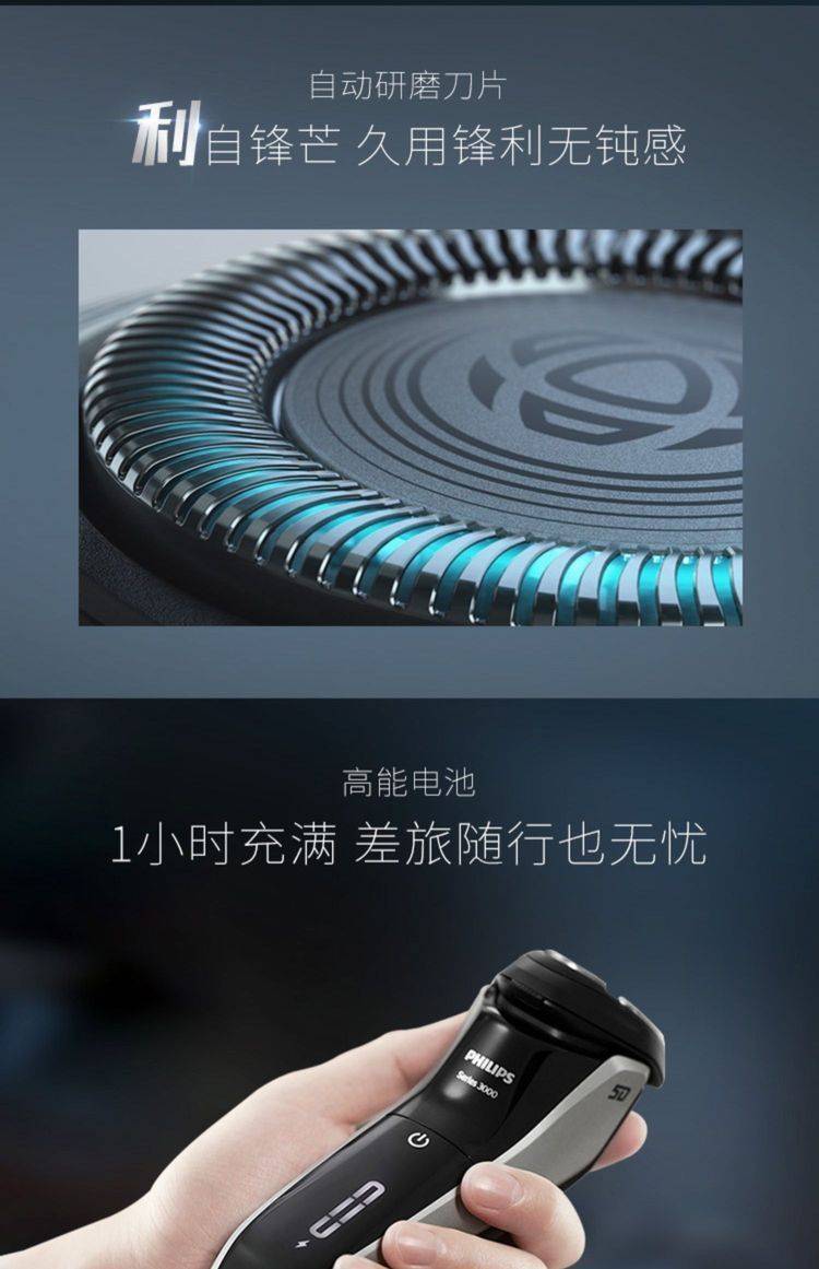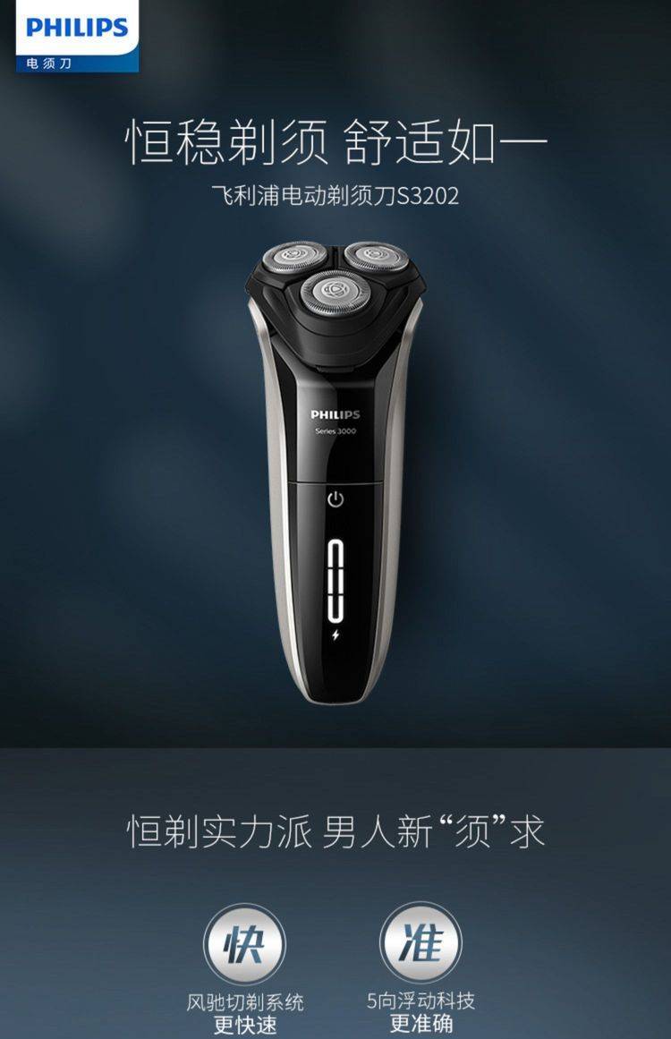 电动剃须刀S3202男士刮胡刀快充送礼胡须刀三刀头全身水洗