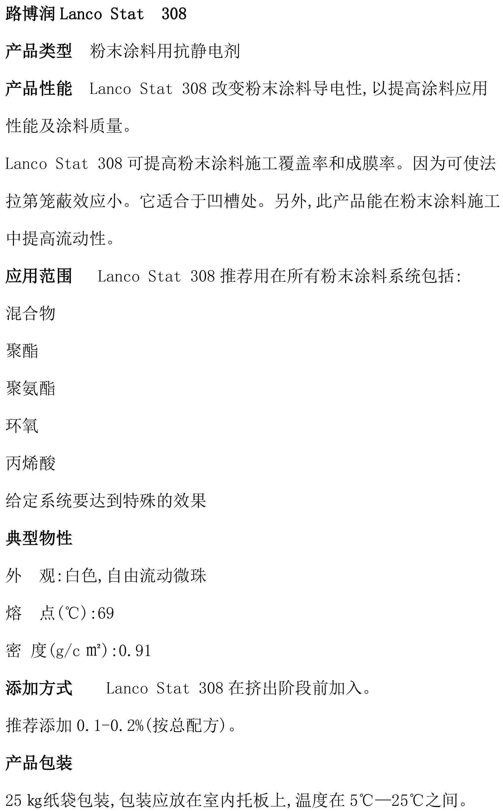 路博润Lanco Stat 308 超分散剂 达到良好的储存效果 抗絮凝 粉末涂料用