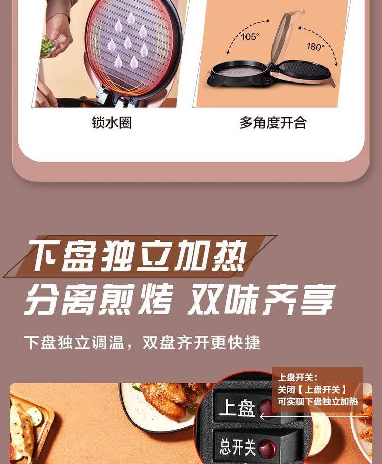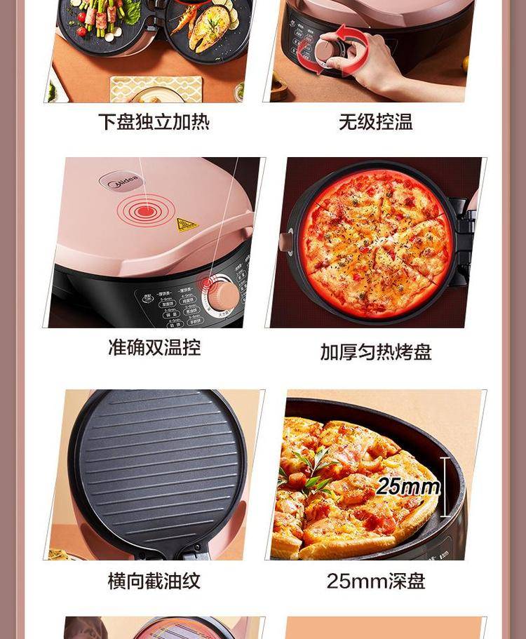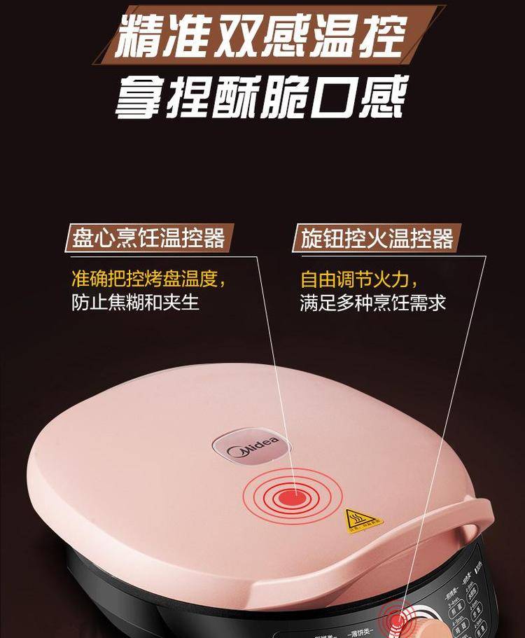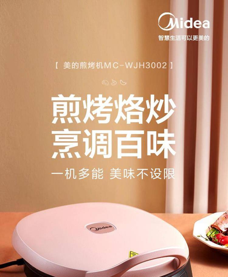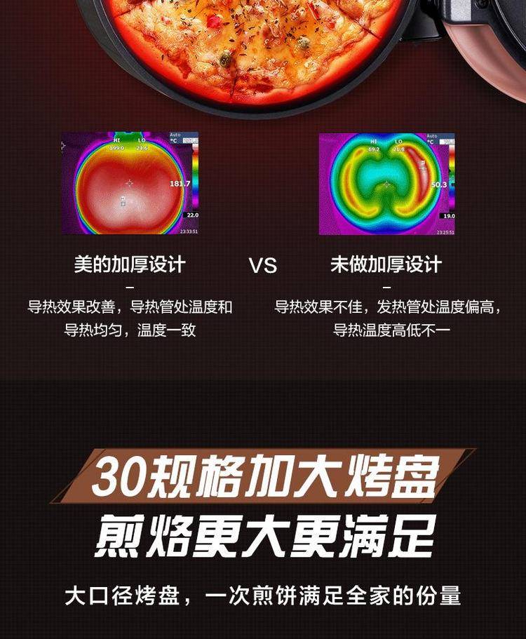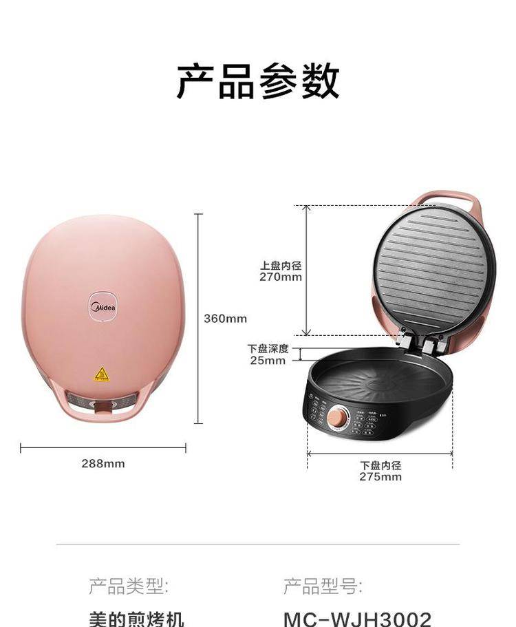 美的电饼铛WJH3002家用双面加热电饼档旋加深烤盘煎烤机
