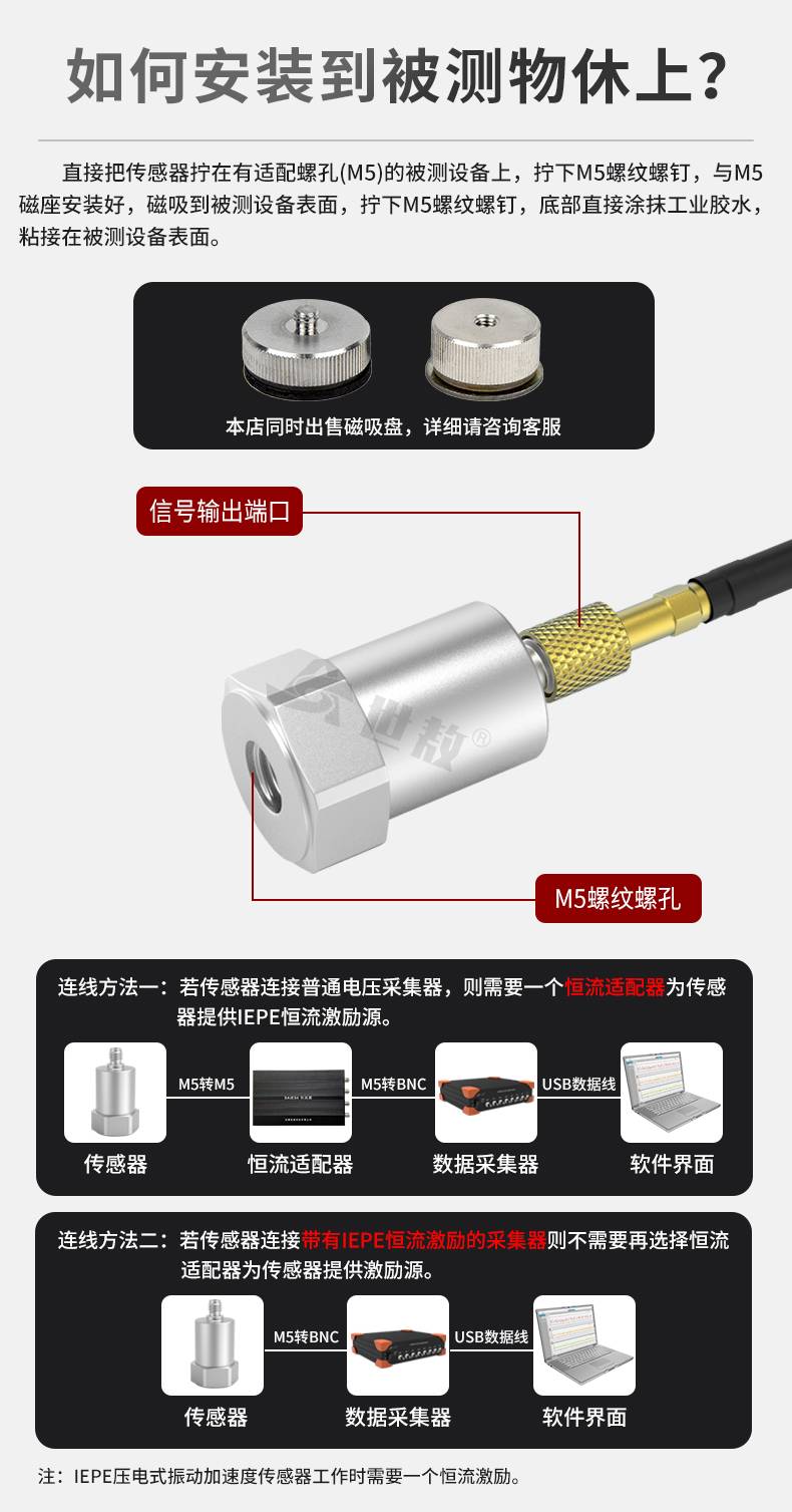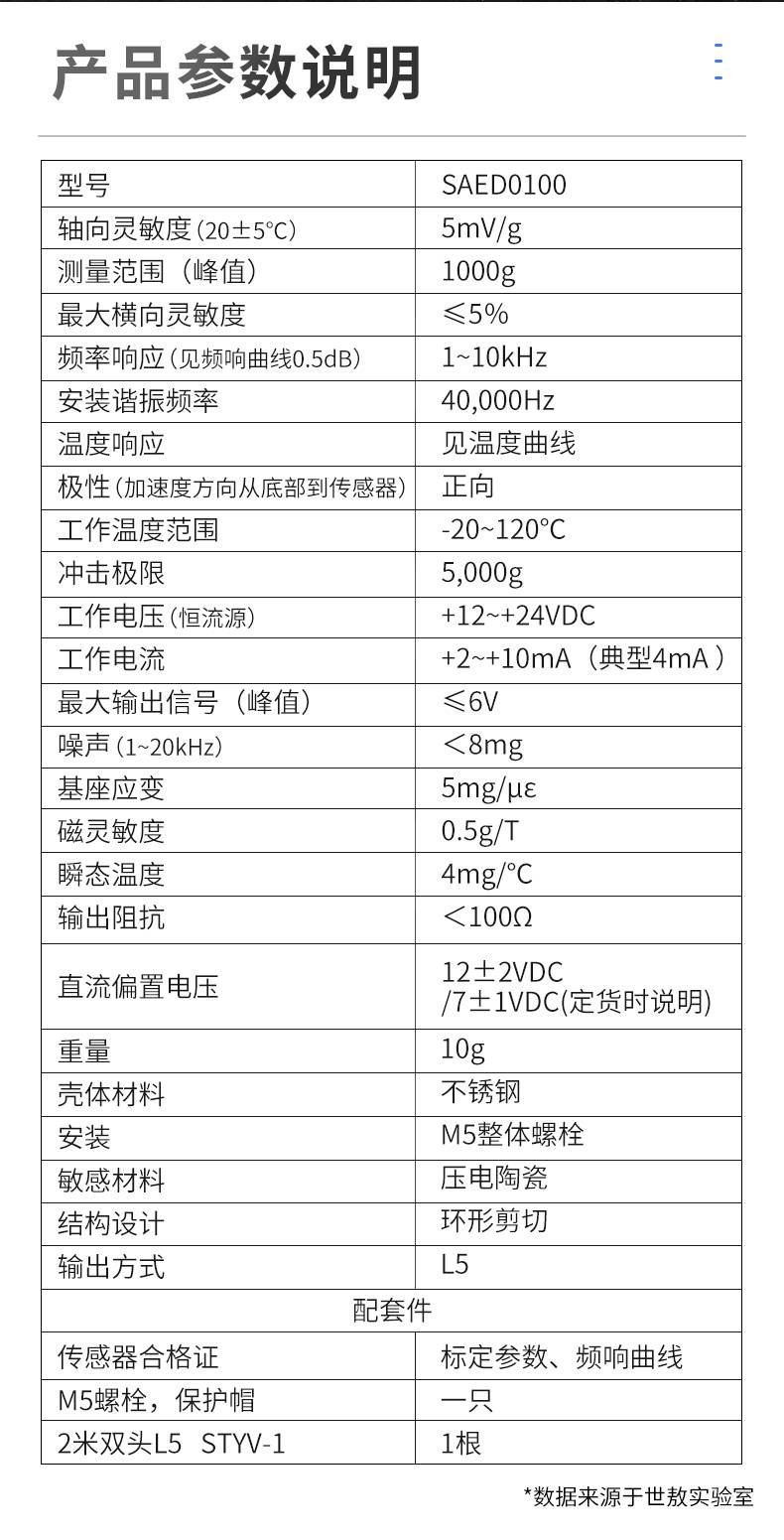 SAED0100压电式加速度传感器频率/动态范围宽小体积轻量通用IEPE