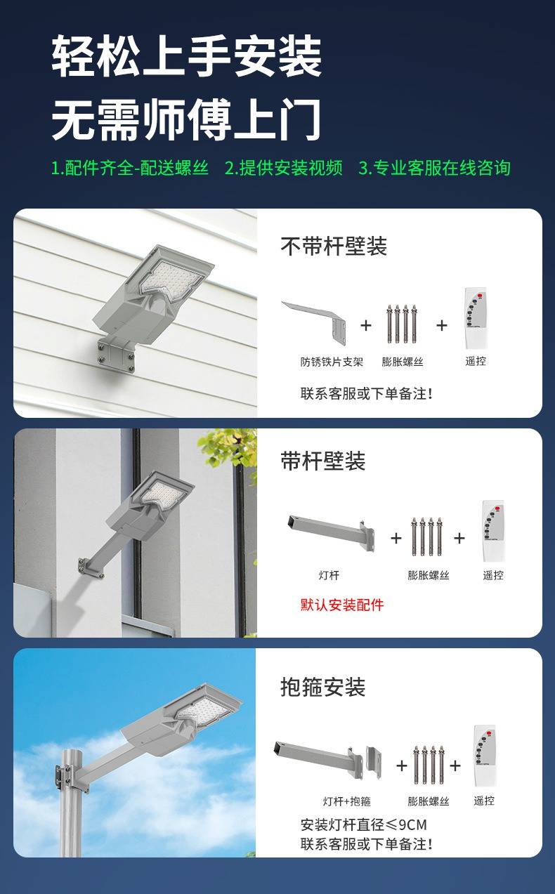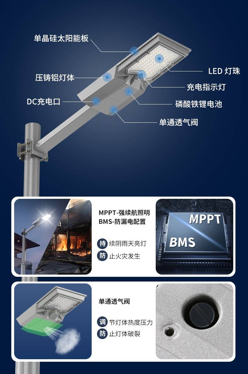 户外一体化太阳能路灯80w新农村人体感应LED灯头庭院灯