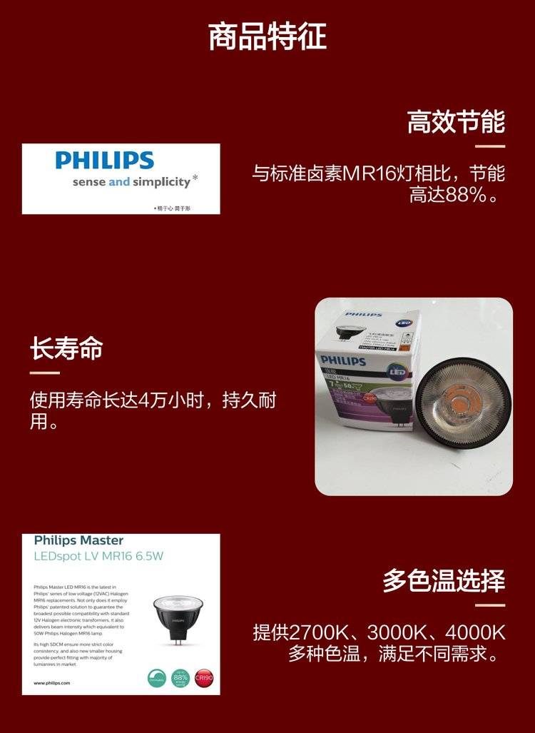 飞利浦LED灯杯 高效节能冷束设计 适用于家居食物照明场景