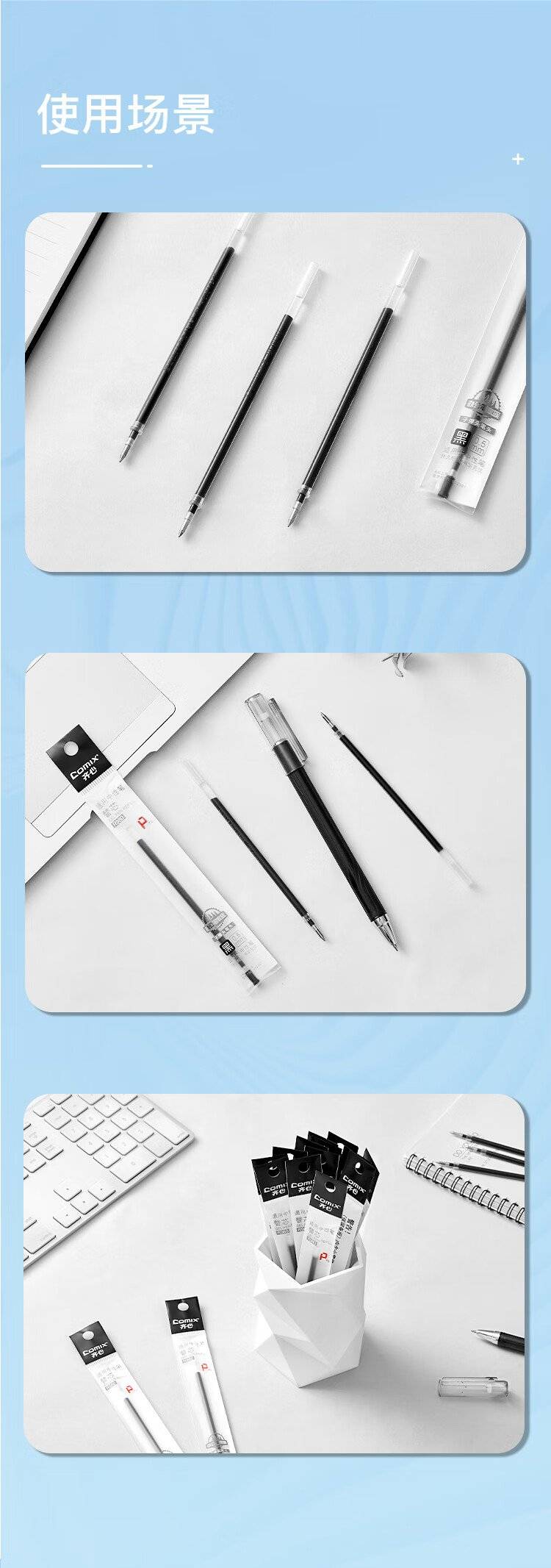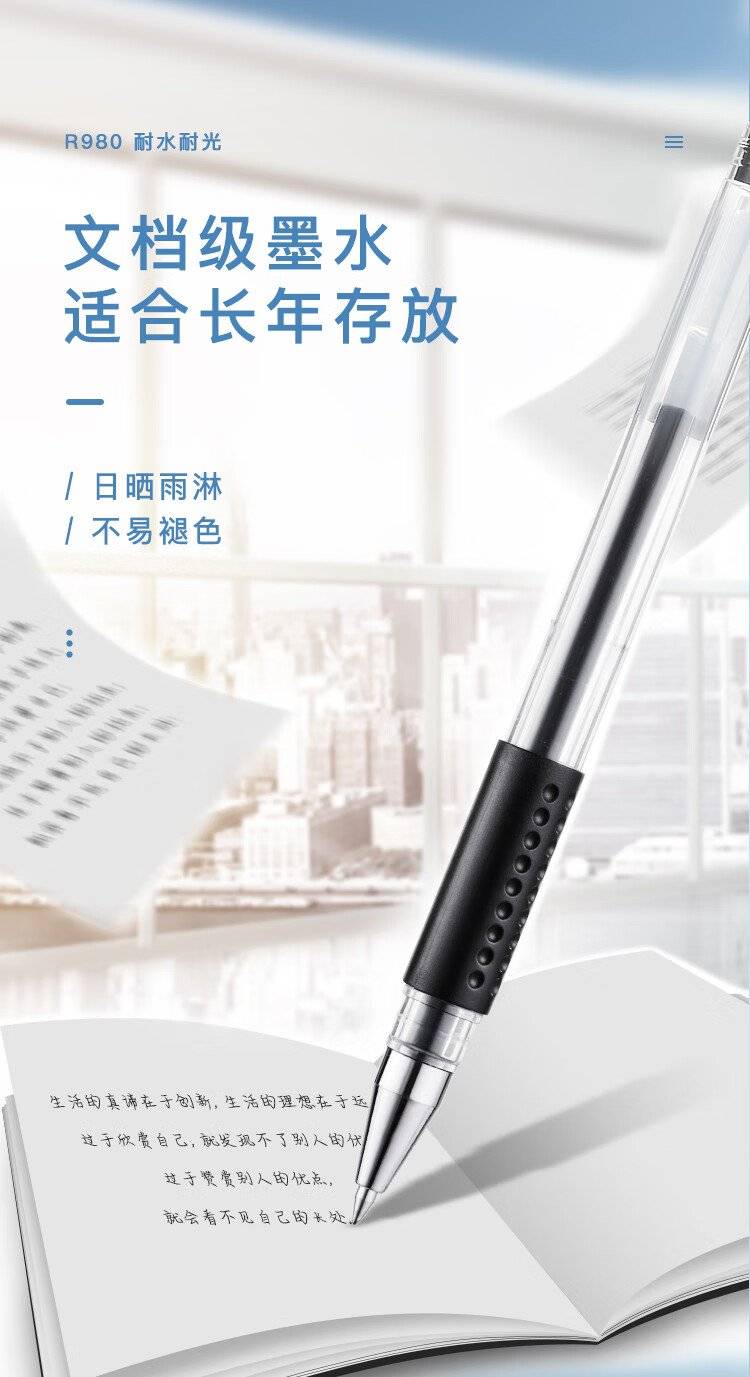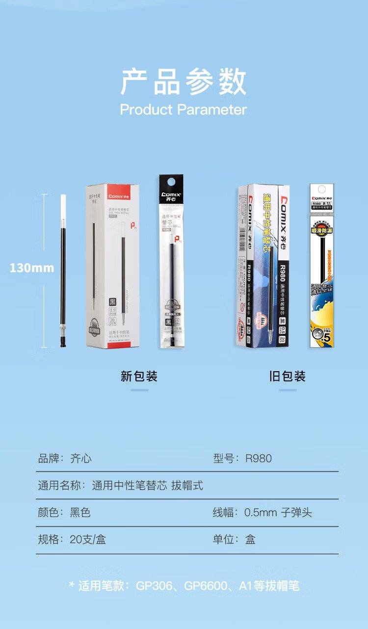 【齐心R980】中性笔芯 0.5mm子弹头学生通用替芯黑/色