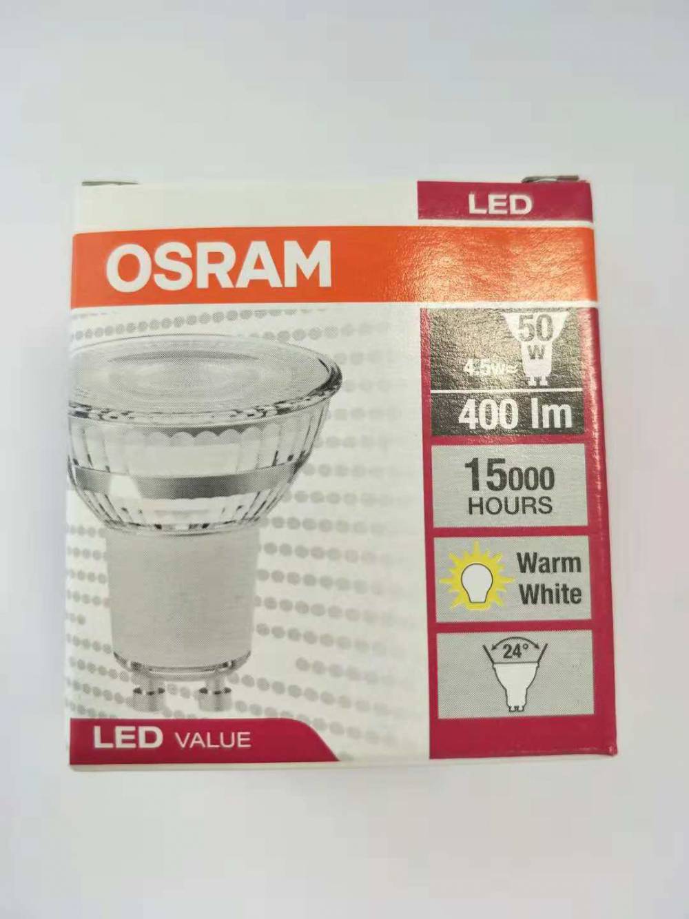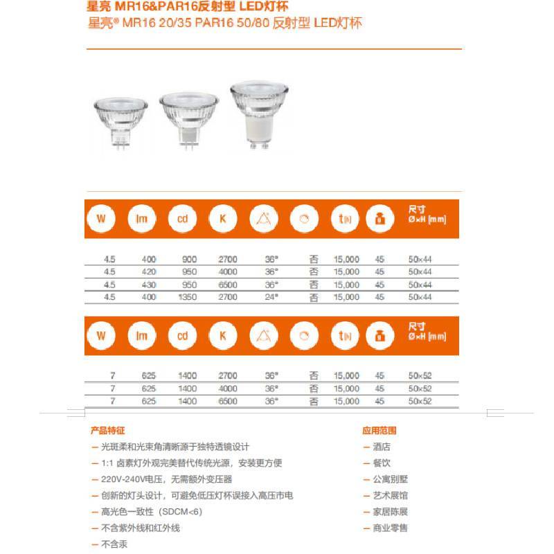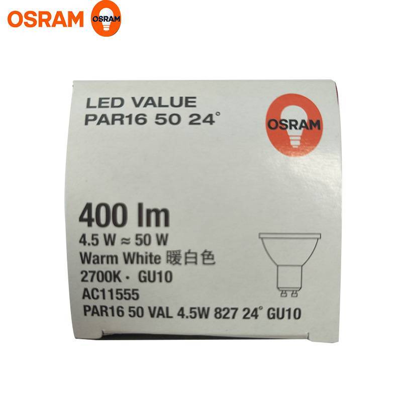 OSRAM欧司朗PAR16 4.5W GU10 LED反射灯杯 暖白光玻璃材质