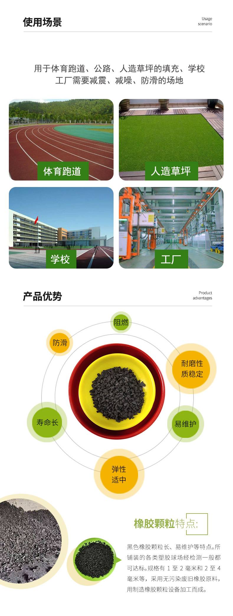 Supply of coloured plastic floors grassfill rubber particles waste tyre particles rubber powder