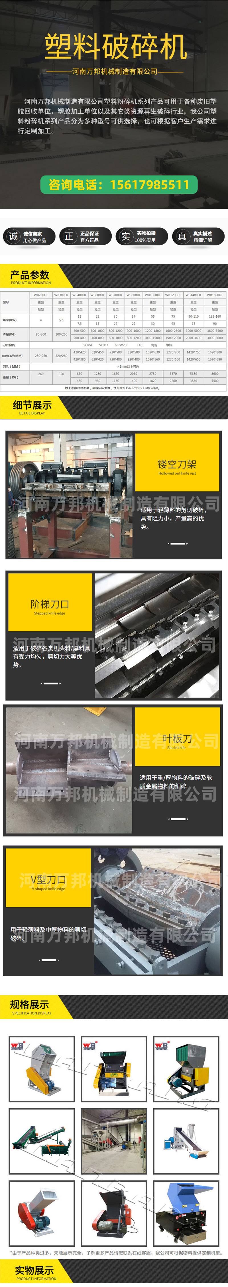 万邦PE储罐破碎机 饮水机外壳粉碎机 塑料链板碎料机