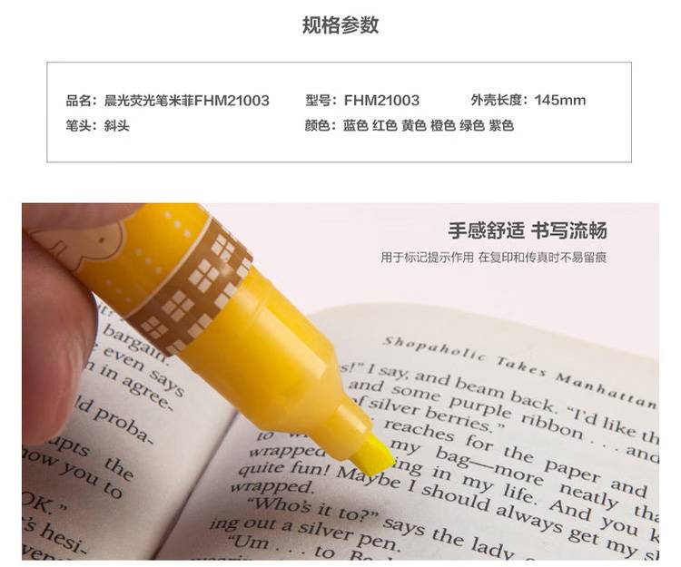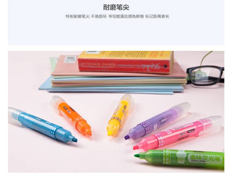 晨光单头荧光笔 米菲香味斜头标记笔记号笔蓝色12支装 FHM21003B