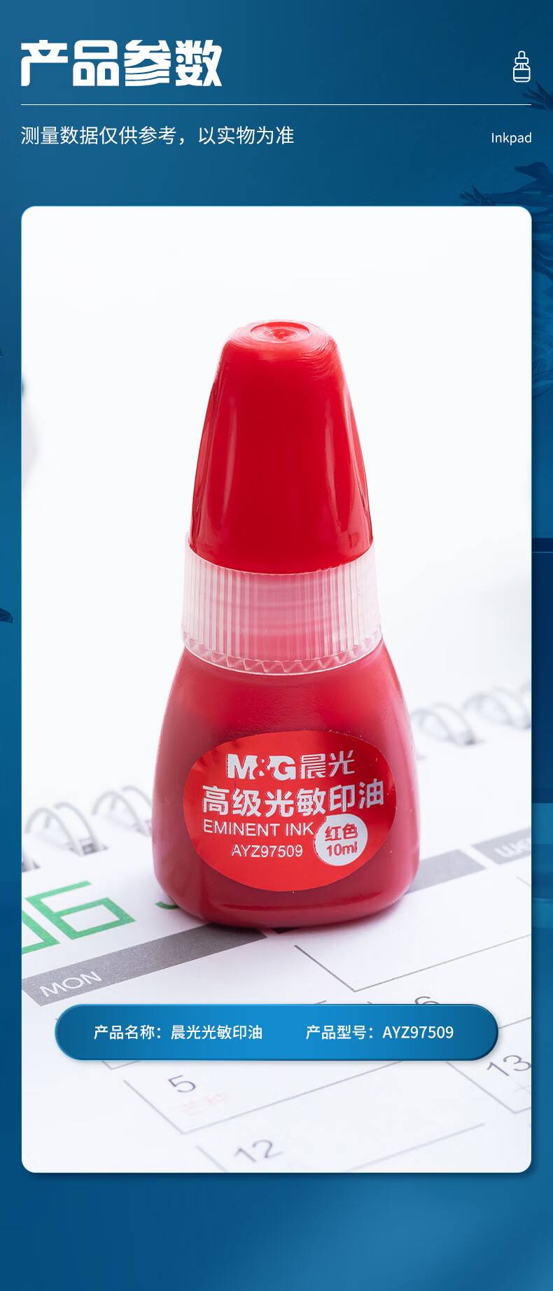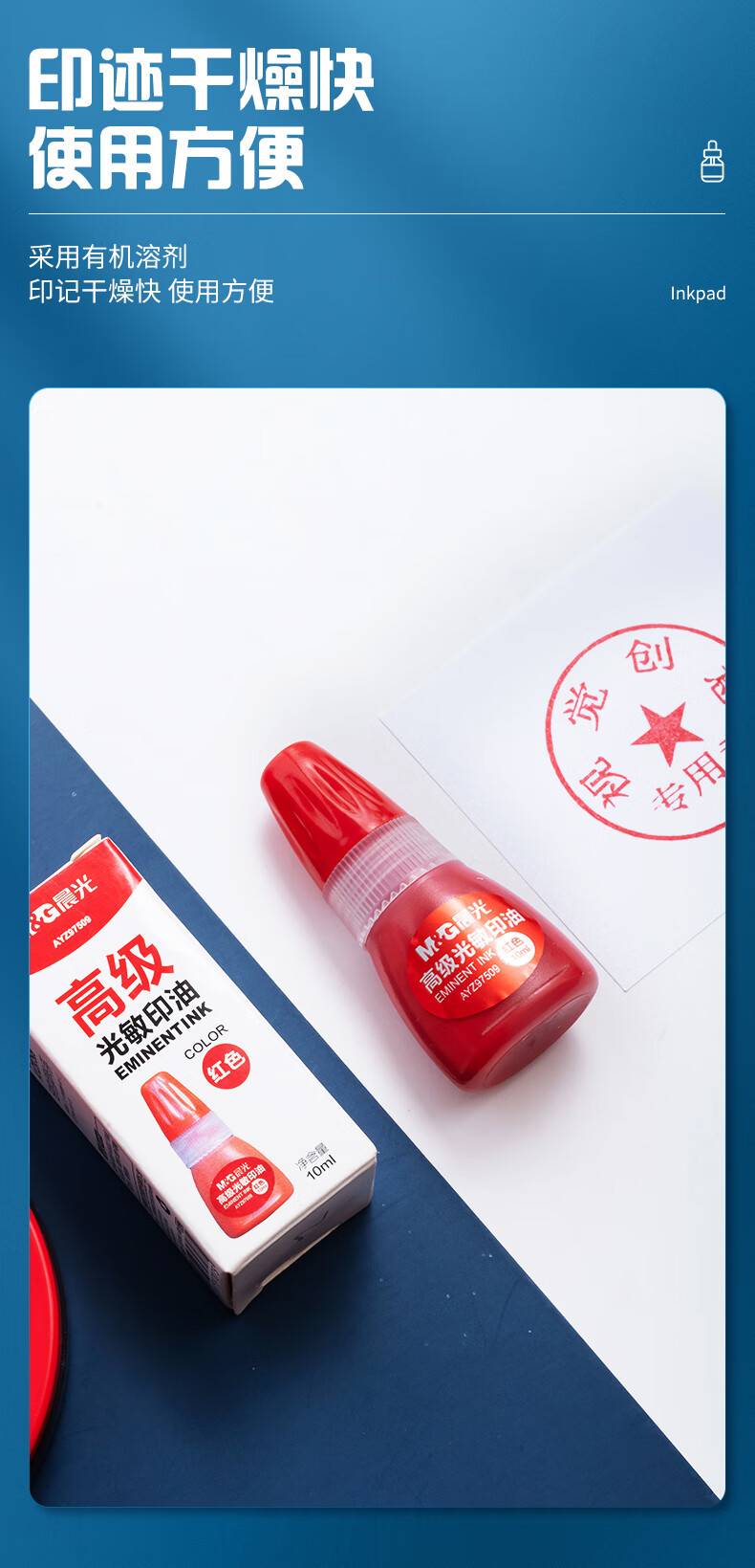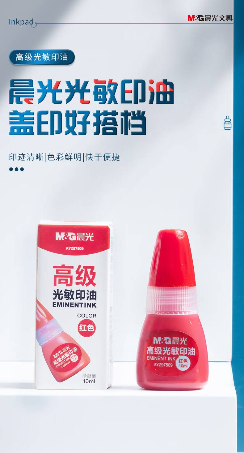 晨光10ml财务光敏印油 红色印章印台专用印油 单瓶装AYZ97509