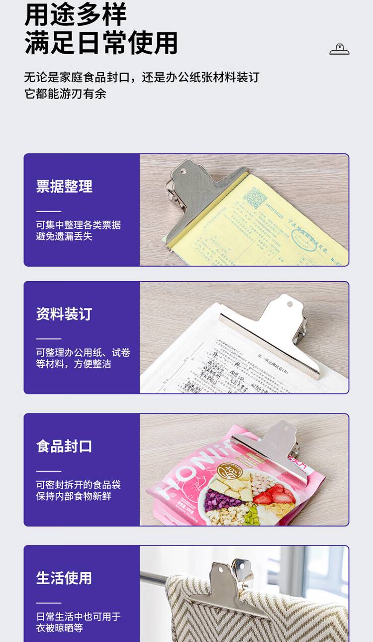得力山形铁票夹 145mm大号画板夹 财务票据夹 办公用品 4只/包9531