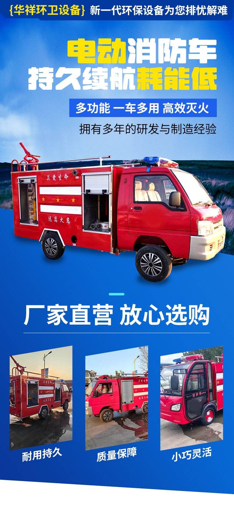 小型 电动消防车 灭火车 功能多样 容量大射程远