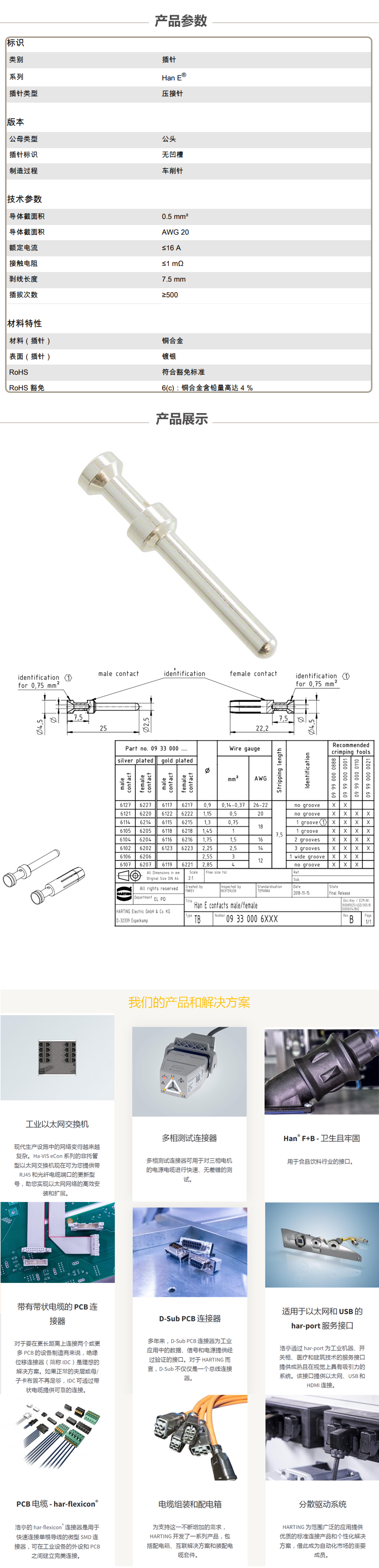 HARTING浩亭 09330006121 重型电源连接器触点 原厂封装 公头