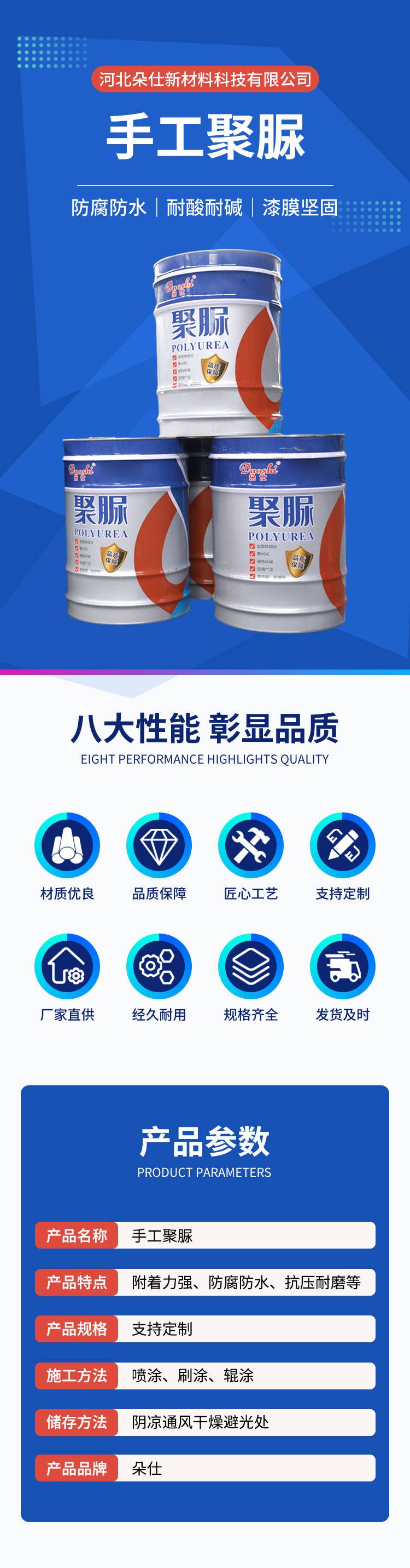地面墙体喷涂聚脲涂料 聚脲防腐防水涂料 不易开裂 专业配套 朵仕