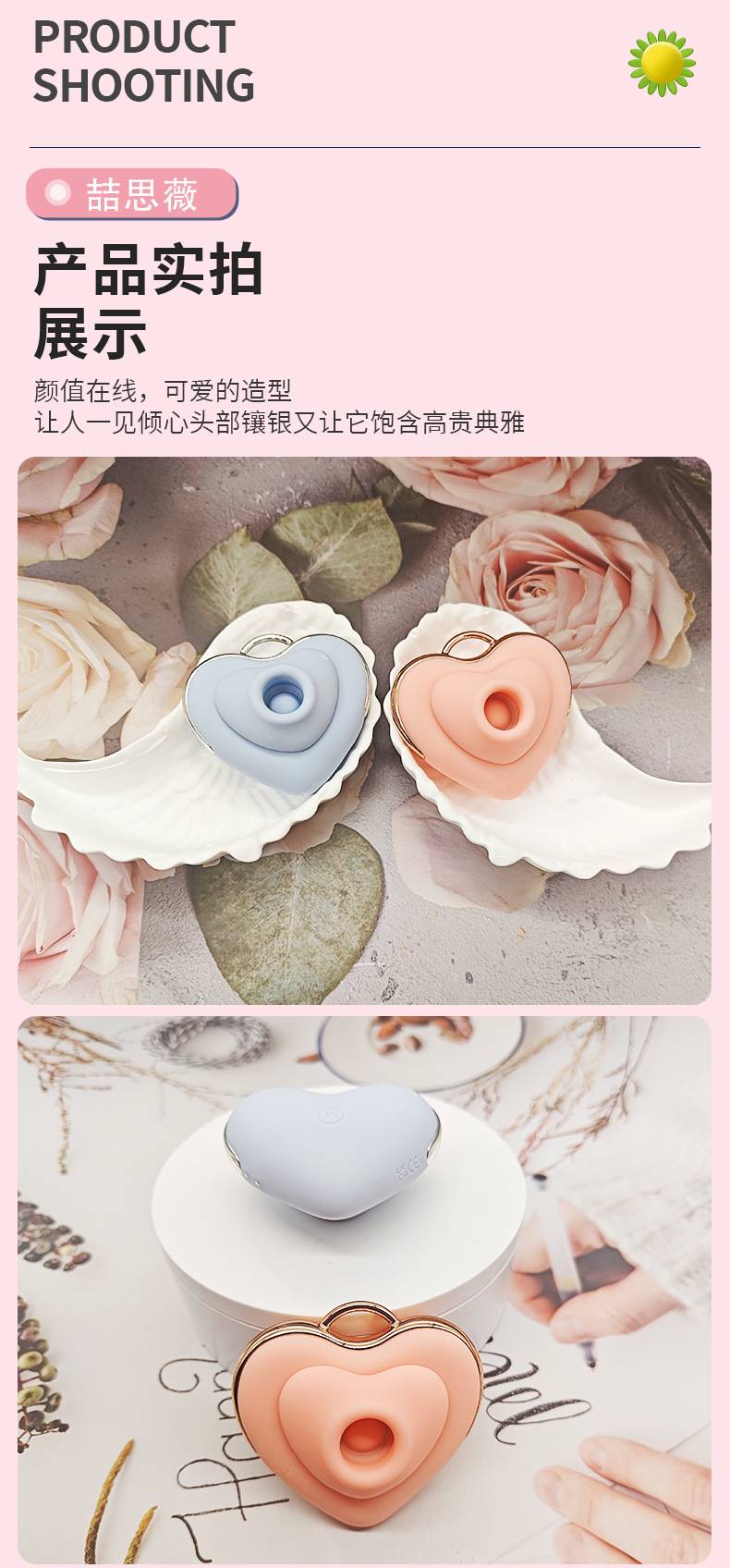 喆思薇爱心跳蛋硅胶材质10频震动5频吮吸粉色成人解压玩具