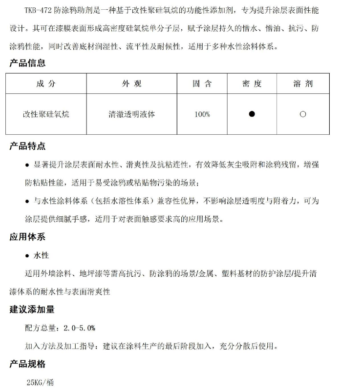 TKB-472水性防涂鸦、可水性过大头油性笔、提高滑爽、耐沾污性能