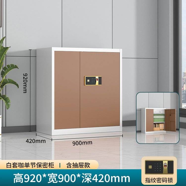 白套咖保密柜办公室指纹密码锁文件柜全钢加厚资料柜落地矮柜