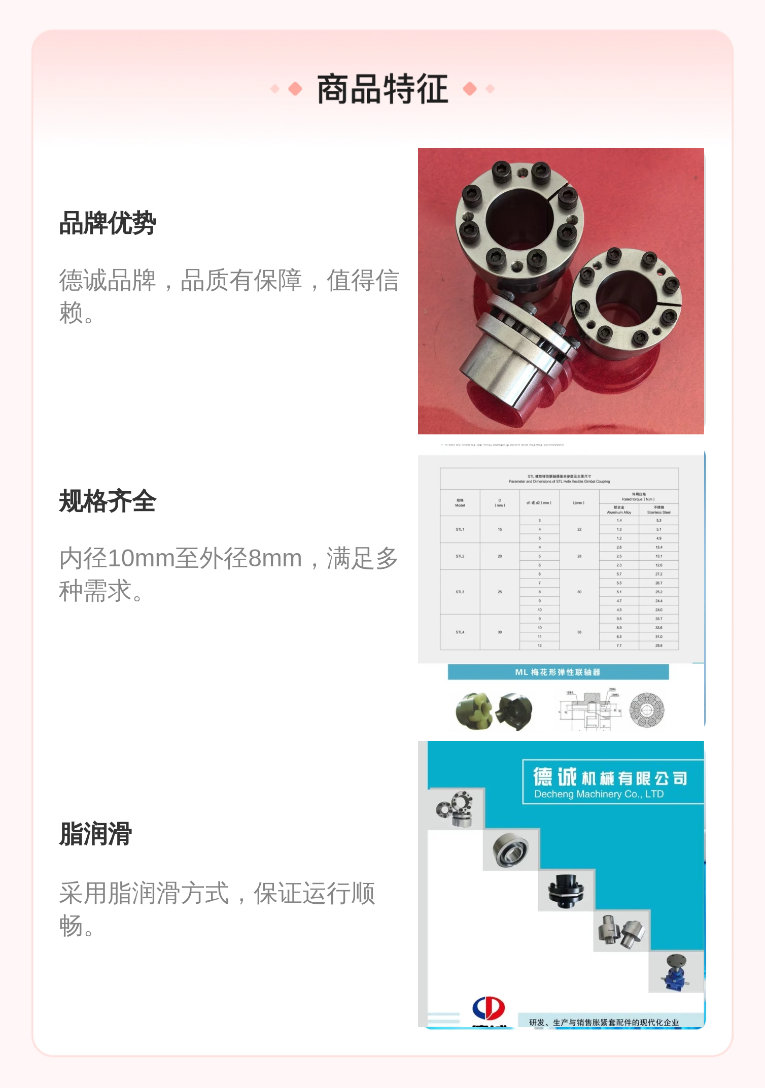 德诚机械 液压胀紧套 工业设备 齐全 润滑 脂润滑
