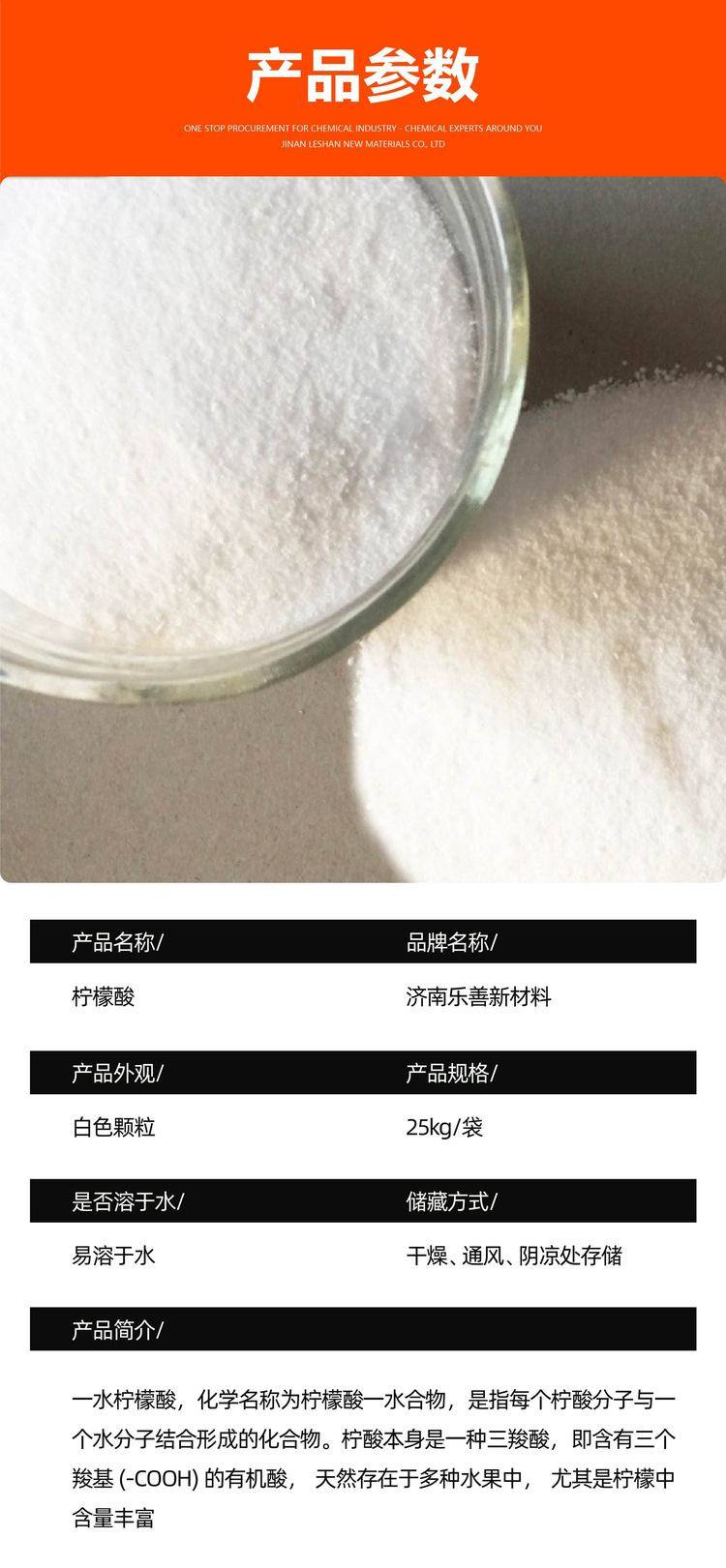 一水柠檬酸除垢剂 污水处理金属清洗增塑剂 厂家工业