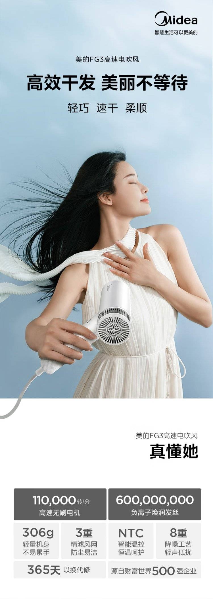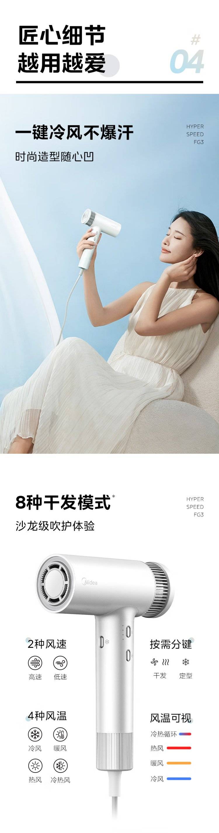 The midea high-speed blower used light power to blow up the ion