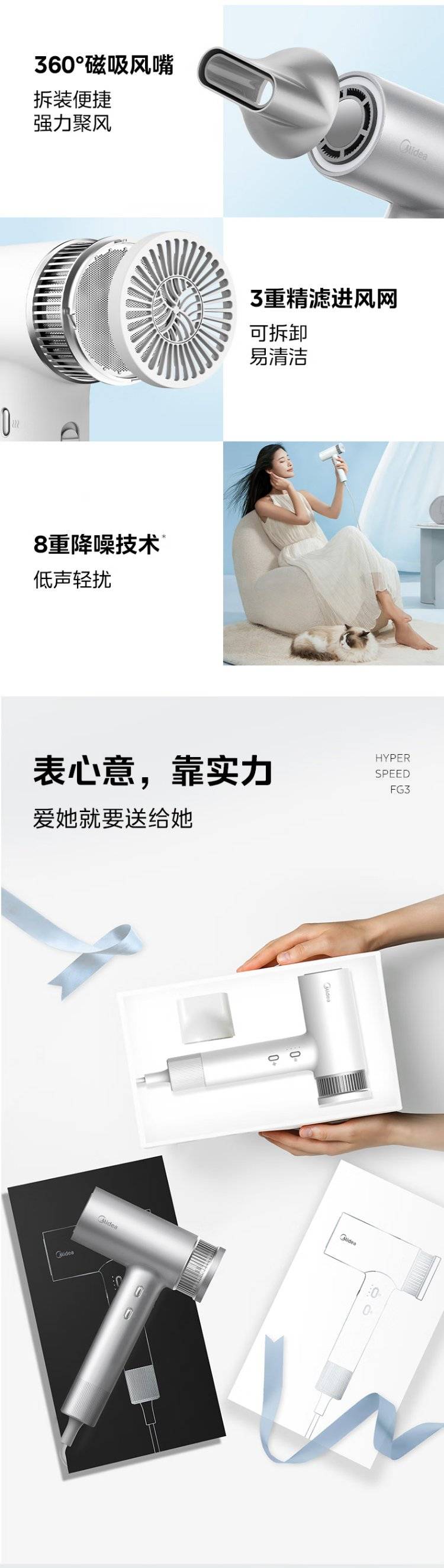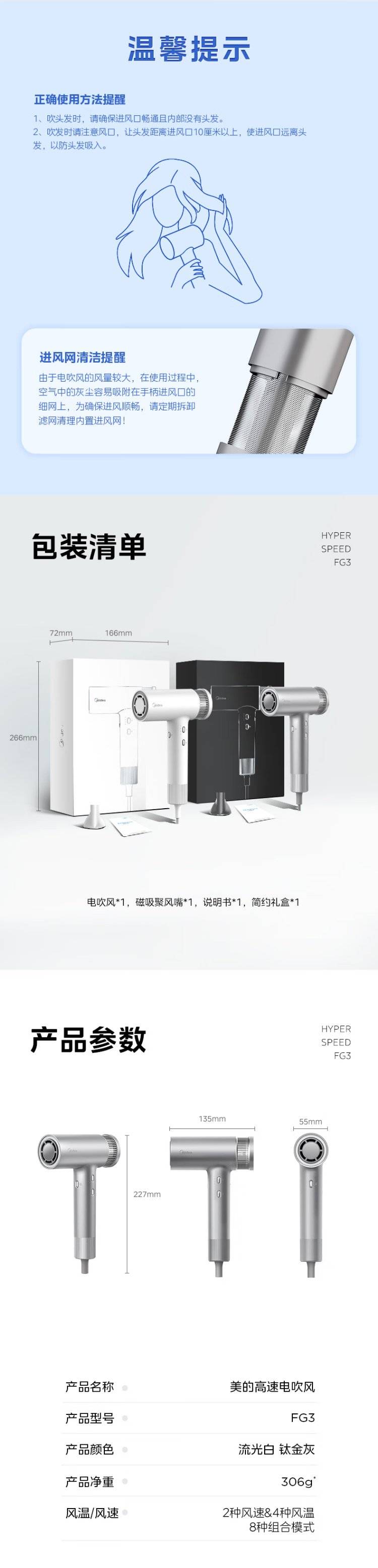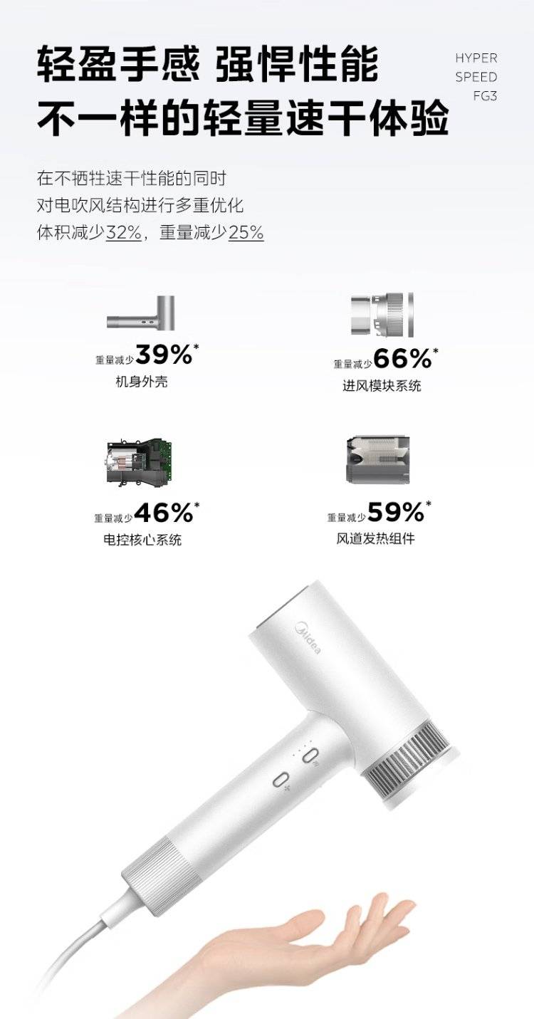 美的(Midea)高速吹风机家用轻巧便携电吹风负离子护发
