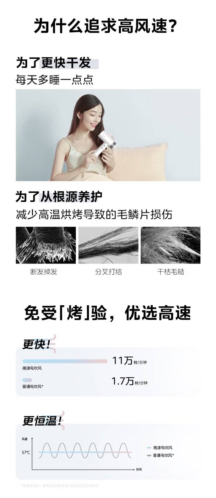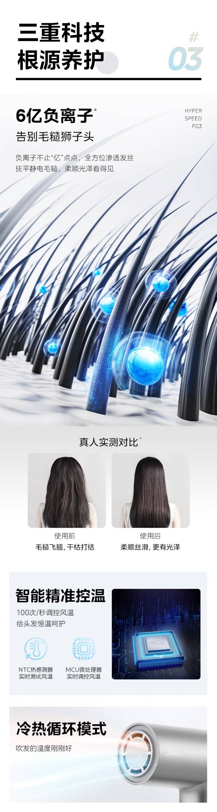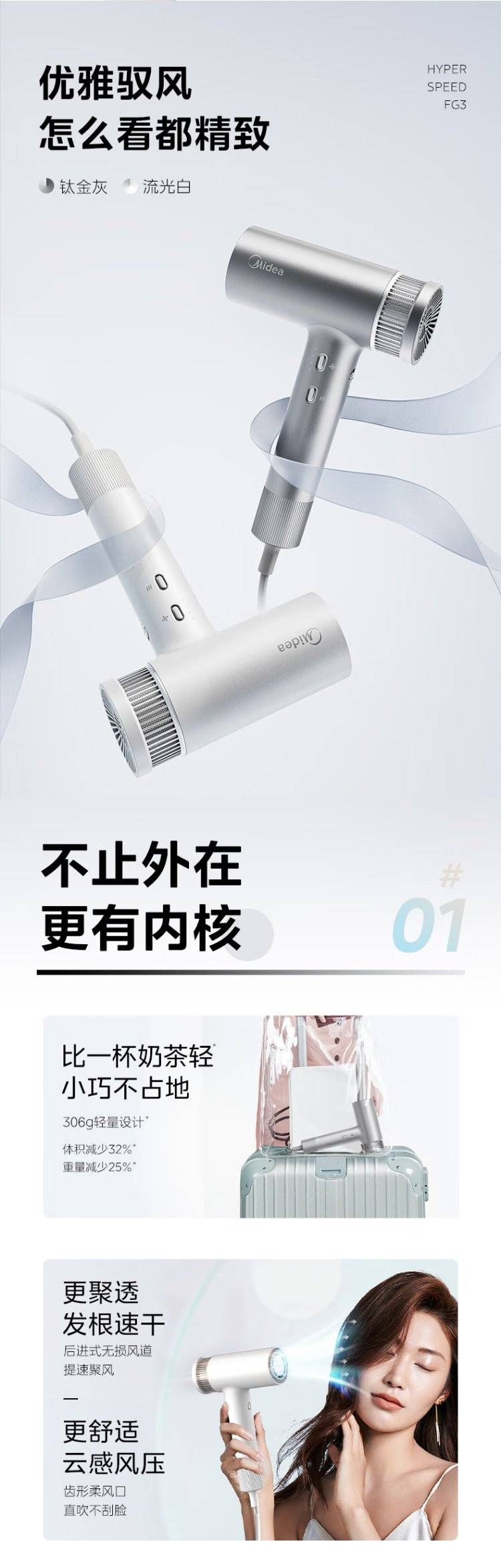 美的(Midea)高速吹风机家用轻巧便携电吹风负离子护发