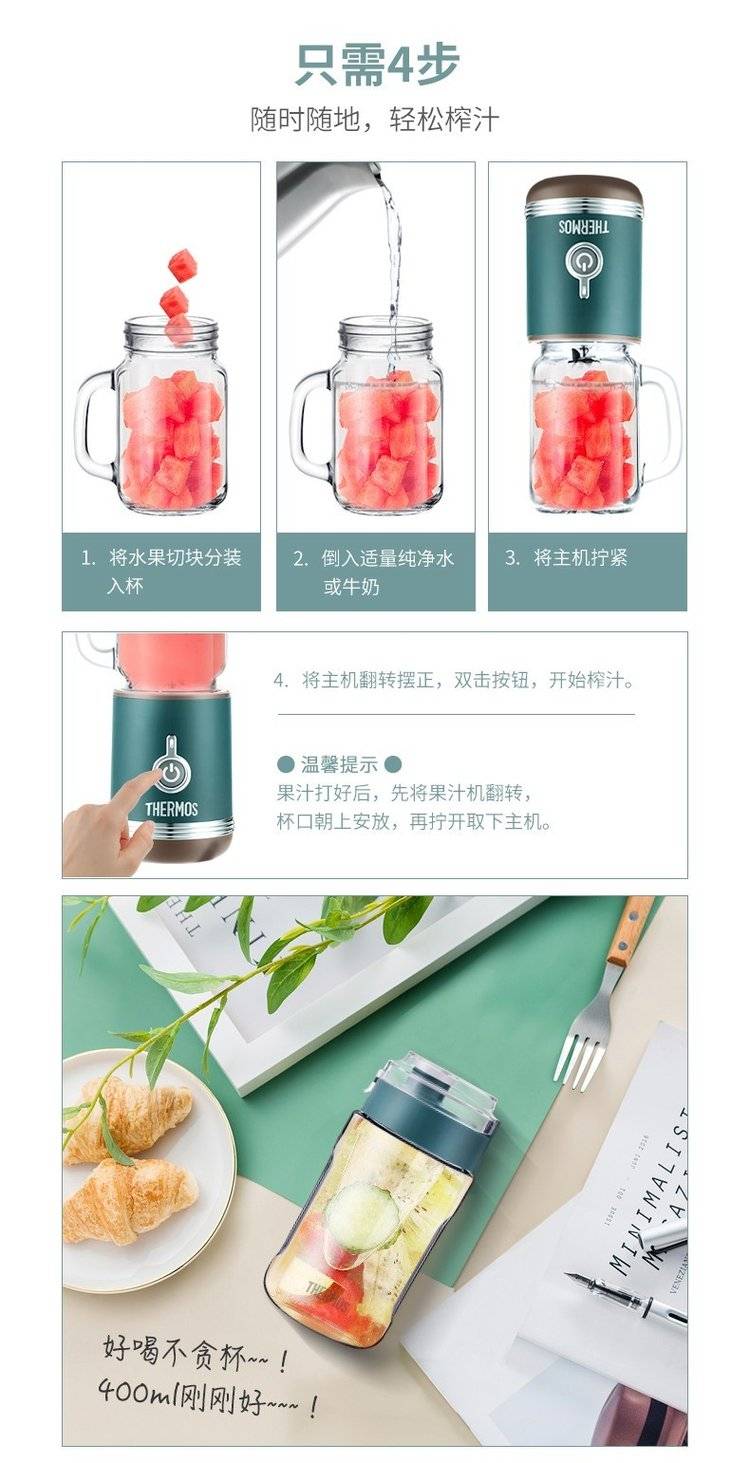 【企业合作】膳魔师(THERM0S)迷你榨汁机果汁机 家用小型便携式
