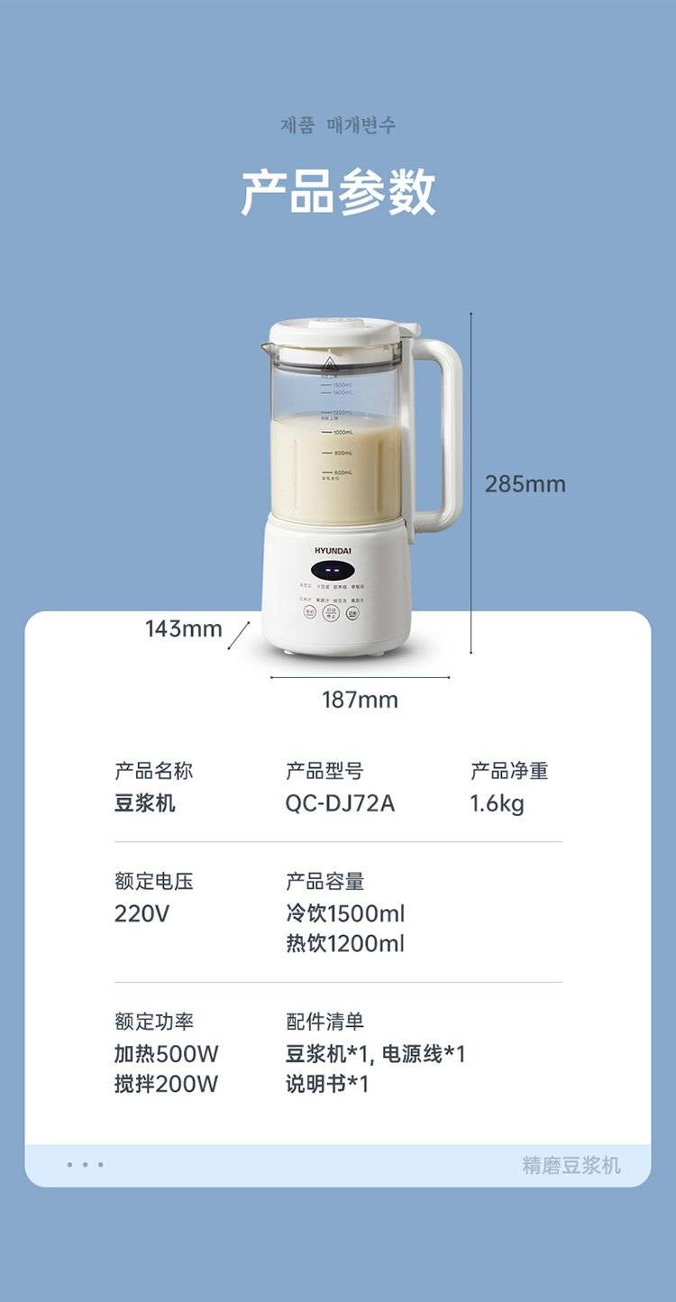 【企业合作】HYUNDIA韩国现代 多功能破壁料理机搅拌机豆浆机